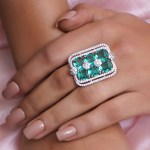 The Women?s AD Stone Studded and Green Emerald Adjustable Ring is a stunning piece that features premium white American Diamonds (AD), offering exceptional sparkle and clarity. The ring showcases a sleek and elegant design, with high-quality stones set in a refined metal band. Its timeless appeal makes it perfect for both special occasions and everyday wear, adding a touch of sophistication to any outfit.