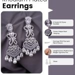 Women Rhodium-Plated AD Stone-Studded Flower Shaped Pearls Hanging Jhumkas are elegant accessories that blend classic charm with a touch of sparkle. Crafted with a gold-toned finish, these earrings feature intricately designed floral motifs, embellished with shimmering rhinestones for added brilliance. Perfect for elevating both everyday and special occasion outfits, these studs exude sophistication and timeless style. Our Rhodium Plating is long lasting and non-allergic to skin