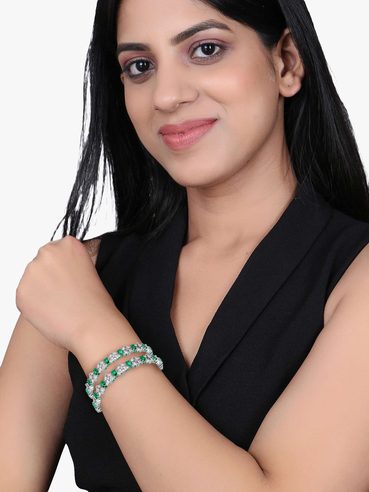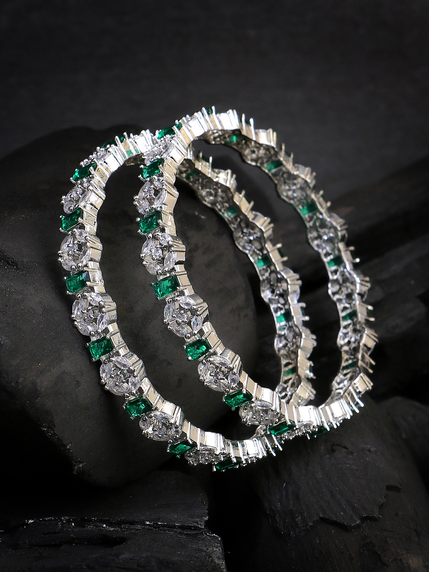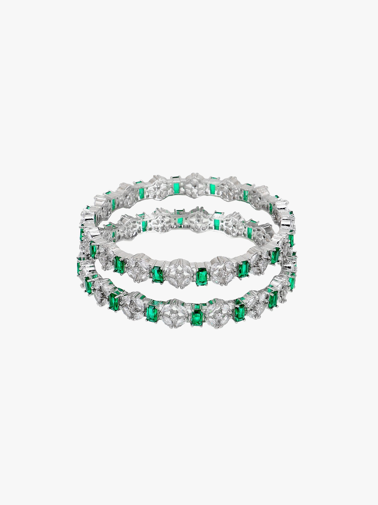 Be the first to review “Rhodium-Plated Green Stone Bangles”