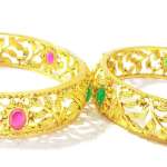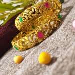Set Of 2 Antique Floral Gold Plated Rajwadi Temple Bangles For Women