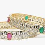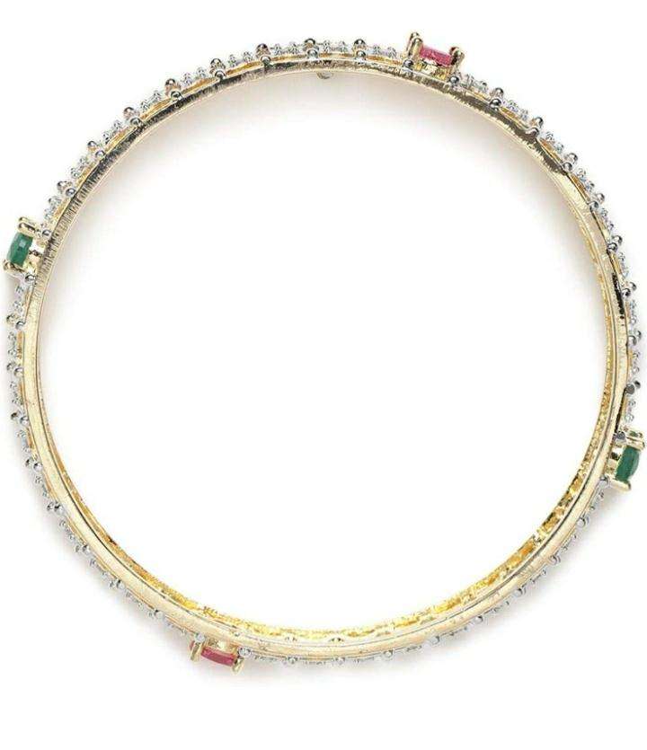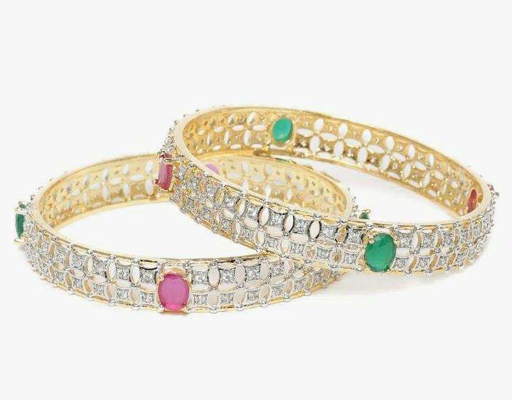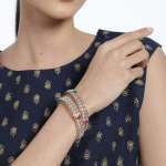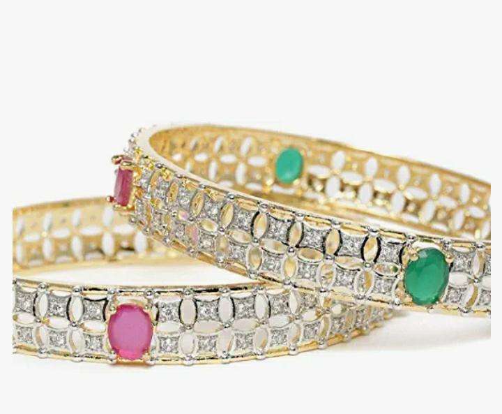Set Of 2 Gold-Plated Green & Pink AD-Studded Handcrafted Bangles For