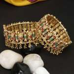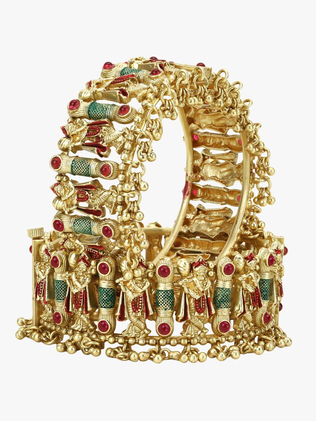 Set of Two 24CT gold-plated Stone-studded , Krishna Design with screw openable Ghungroo handcrafted bangles, each has an intricate Krishna with Flute pattern,our gold plating is long lasting and non allergic to skin.