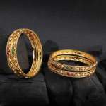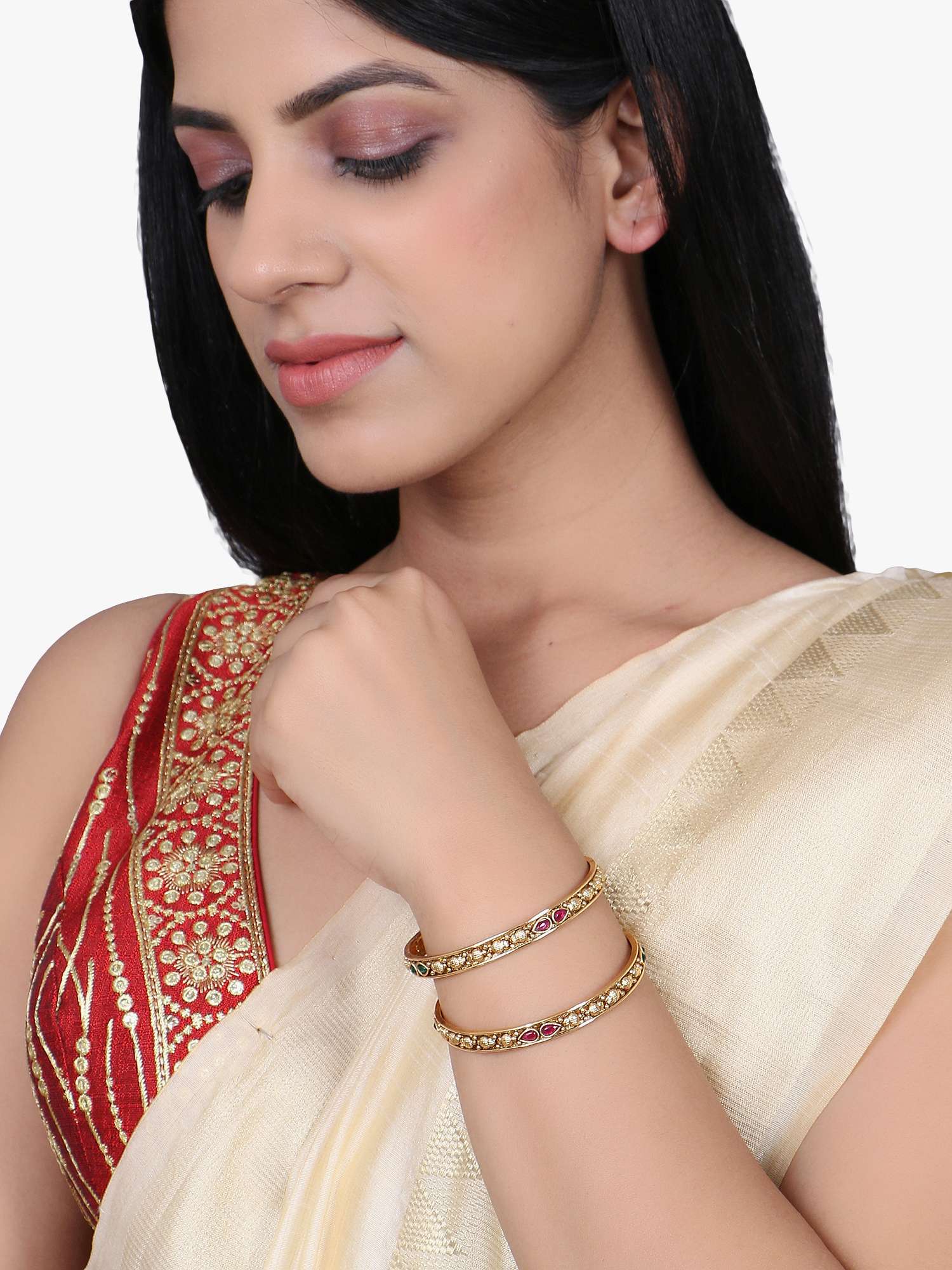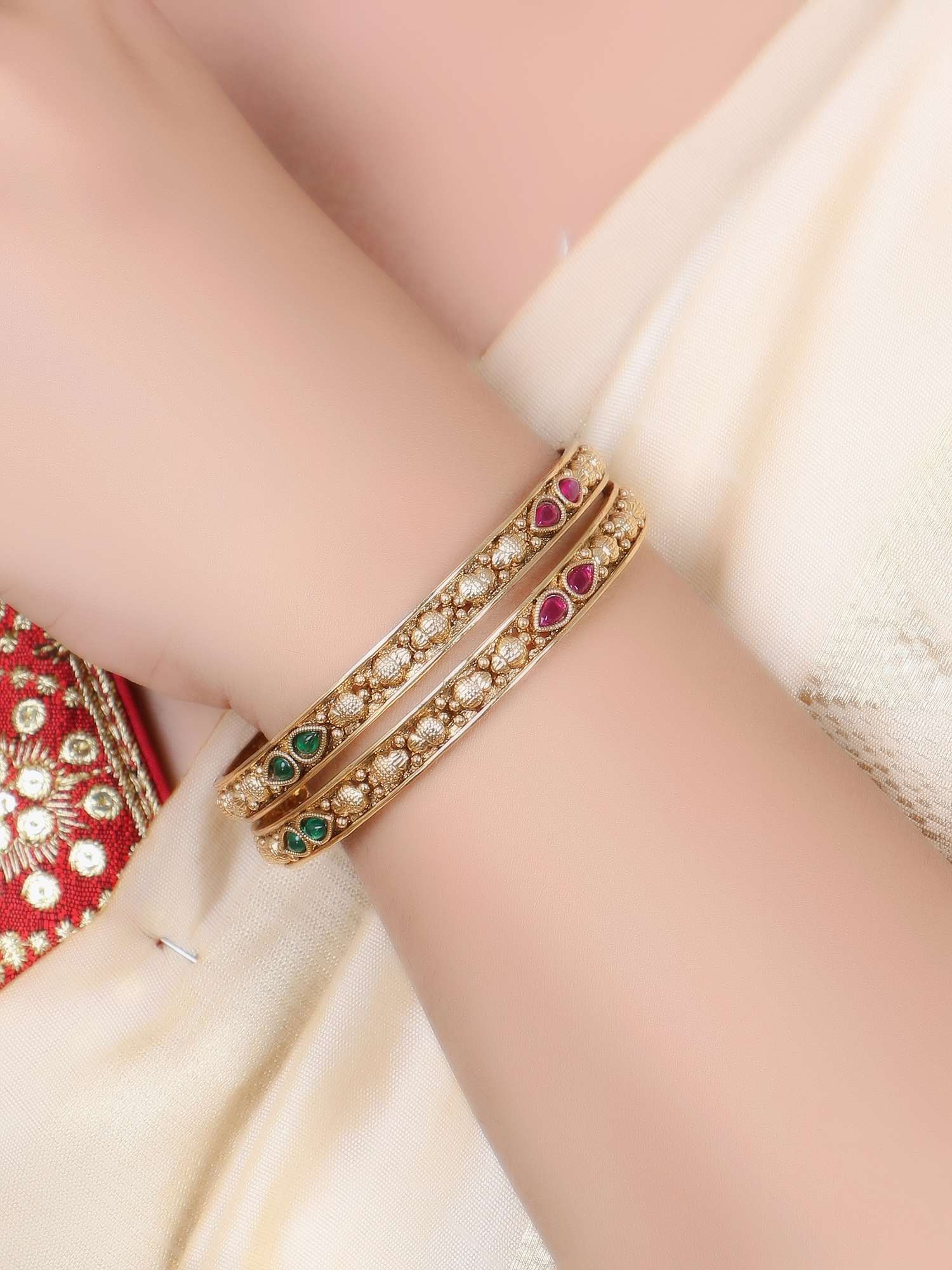 Gold Plated Stone Studded Set of 4 Bangles. Our gold plating is long lasting and non allergic to skin.