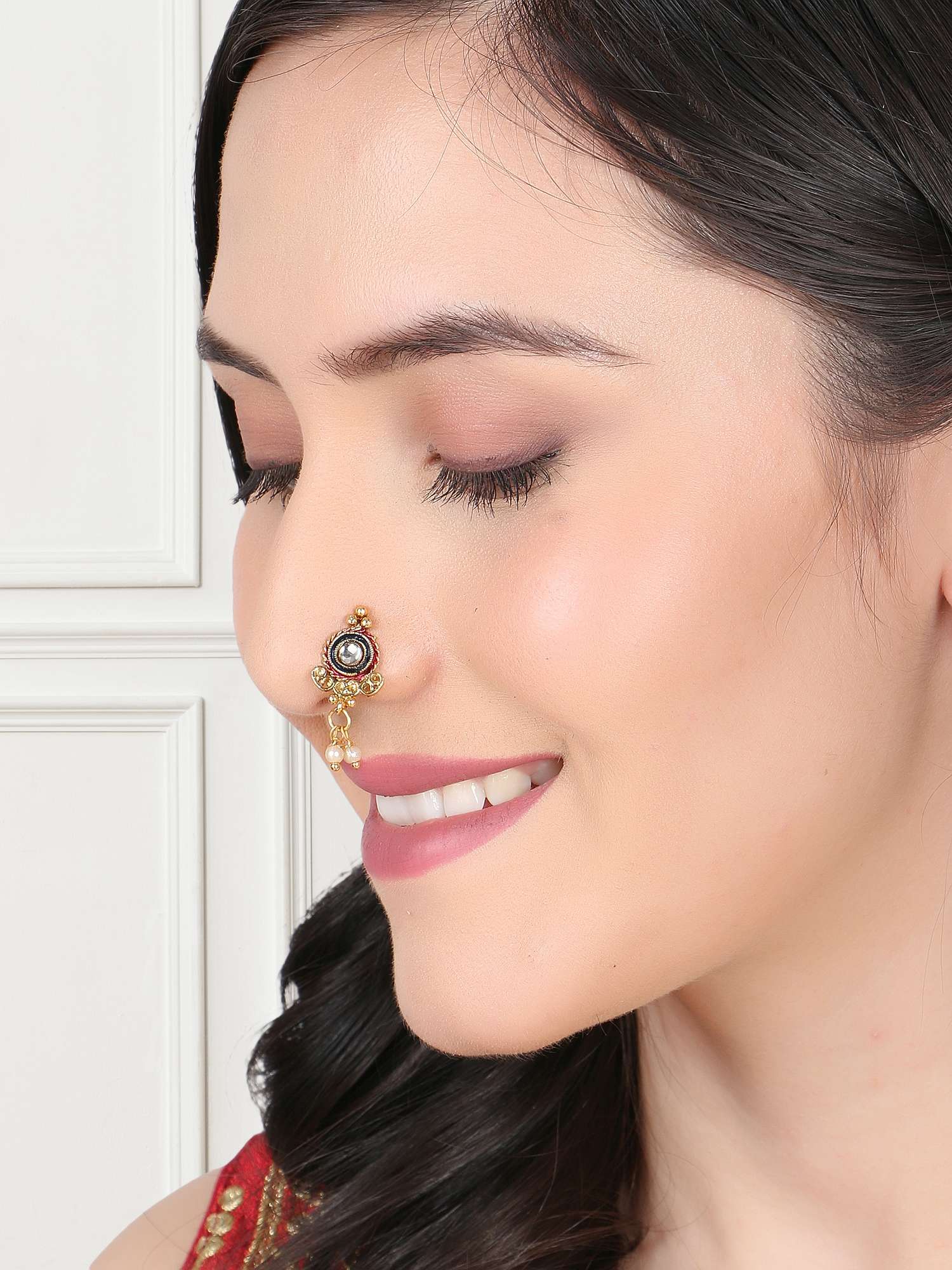 Set of 5 Gold-Plated Stone Studded Clip-On Nosepins. our Gold-plating is long lasting and non allergic to skin.