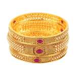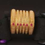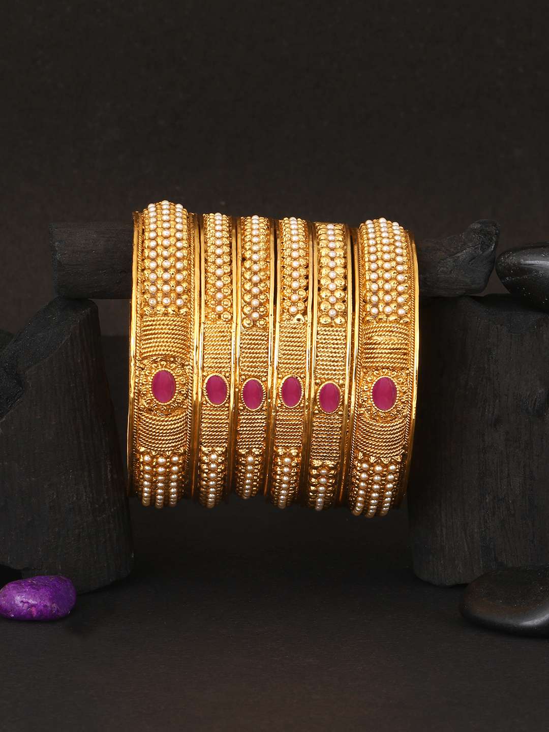 Women Set of 6 24CT Gold-plated Red and Green Stone -Studded handcrafted bangles, has enamelled detail each has intricately textured detailing,our Gold plating is long lasting and non allergic to skin.