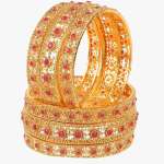 Women Set of 6 24CT Gold-plated Red and Green Stone -Studded handcrafted bangles, has enamelled detail each has intricately textured detailing,our Gold plating is long lasting and non allergic to skin.
