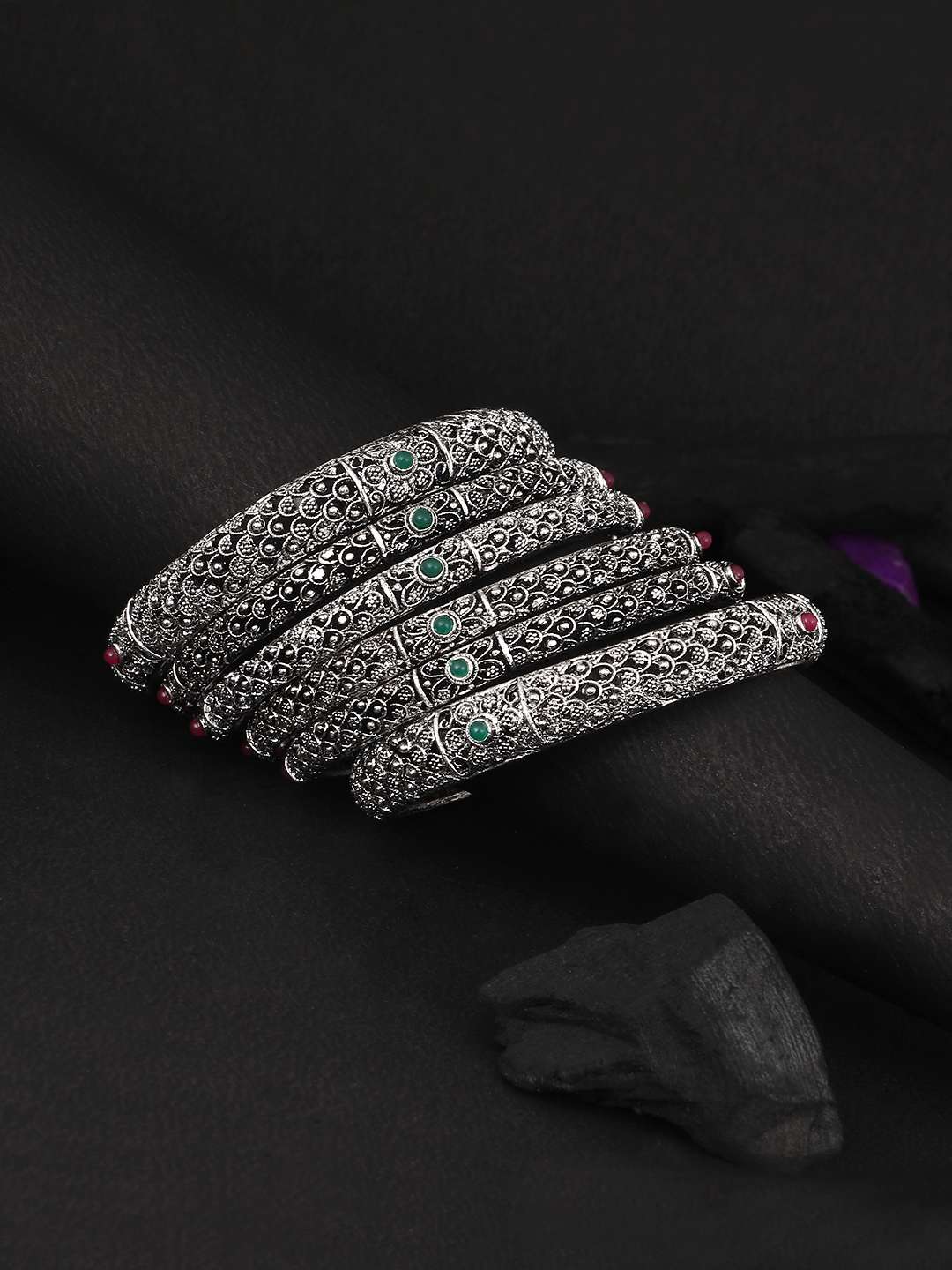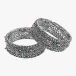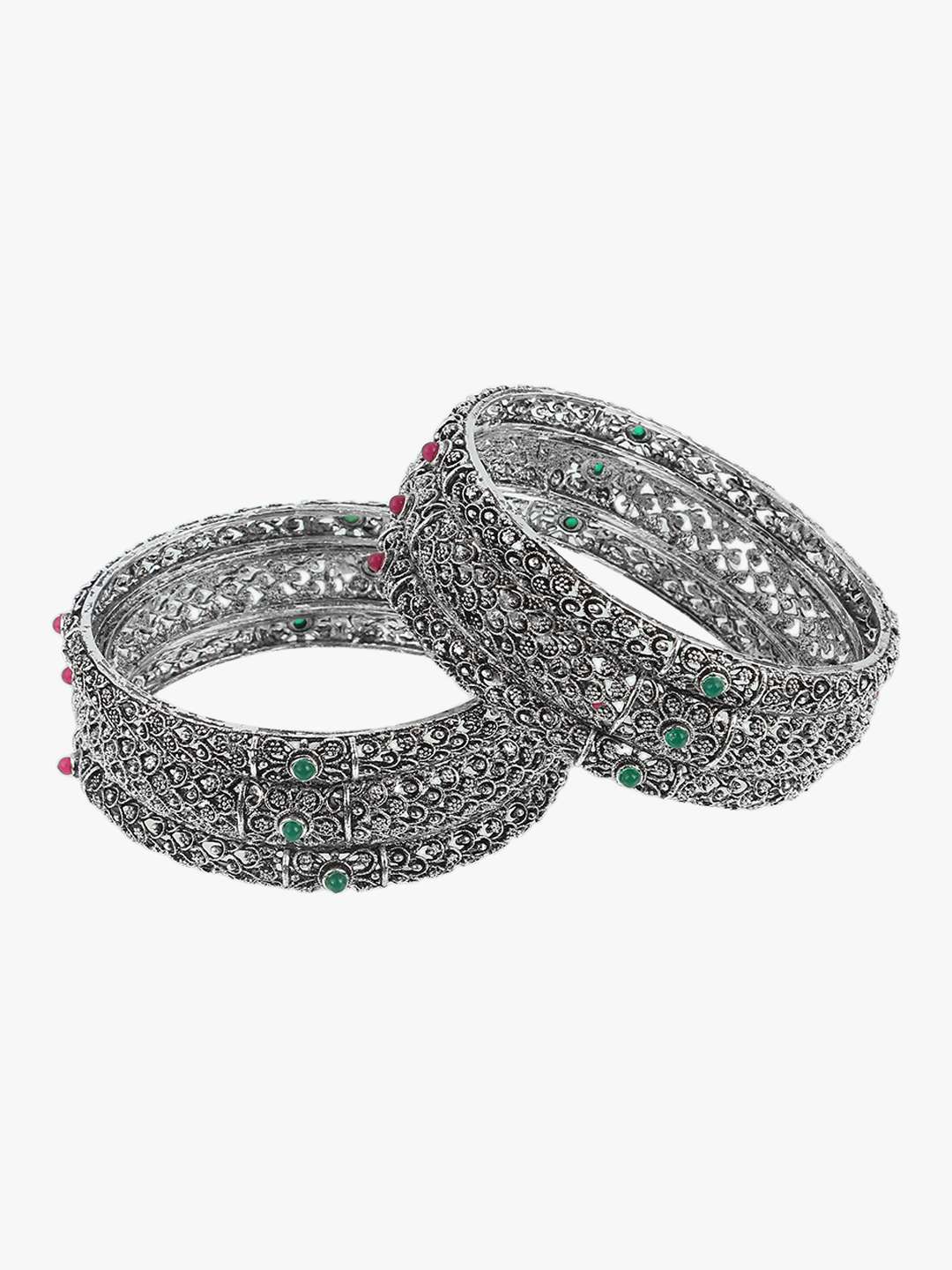 Women Set of 6 24CT Silver-plated Red and Green Stone -Studded handcrafted bangles, has enamelled detail each has intricately textured detailing,our Silver plating is long lasting and non allergic to skin.