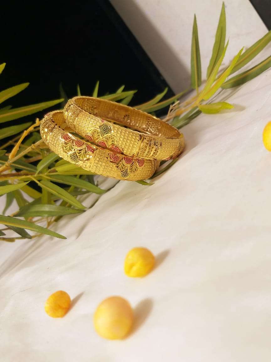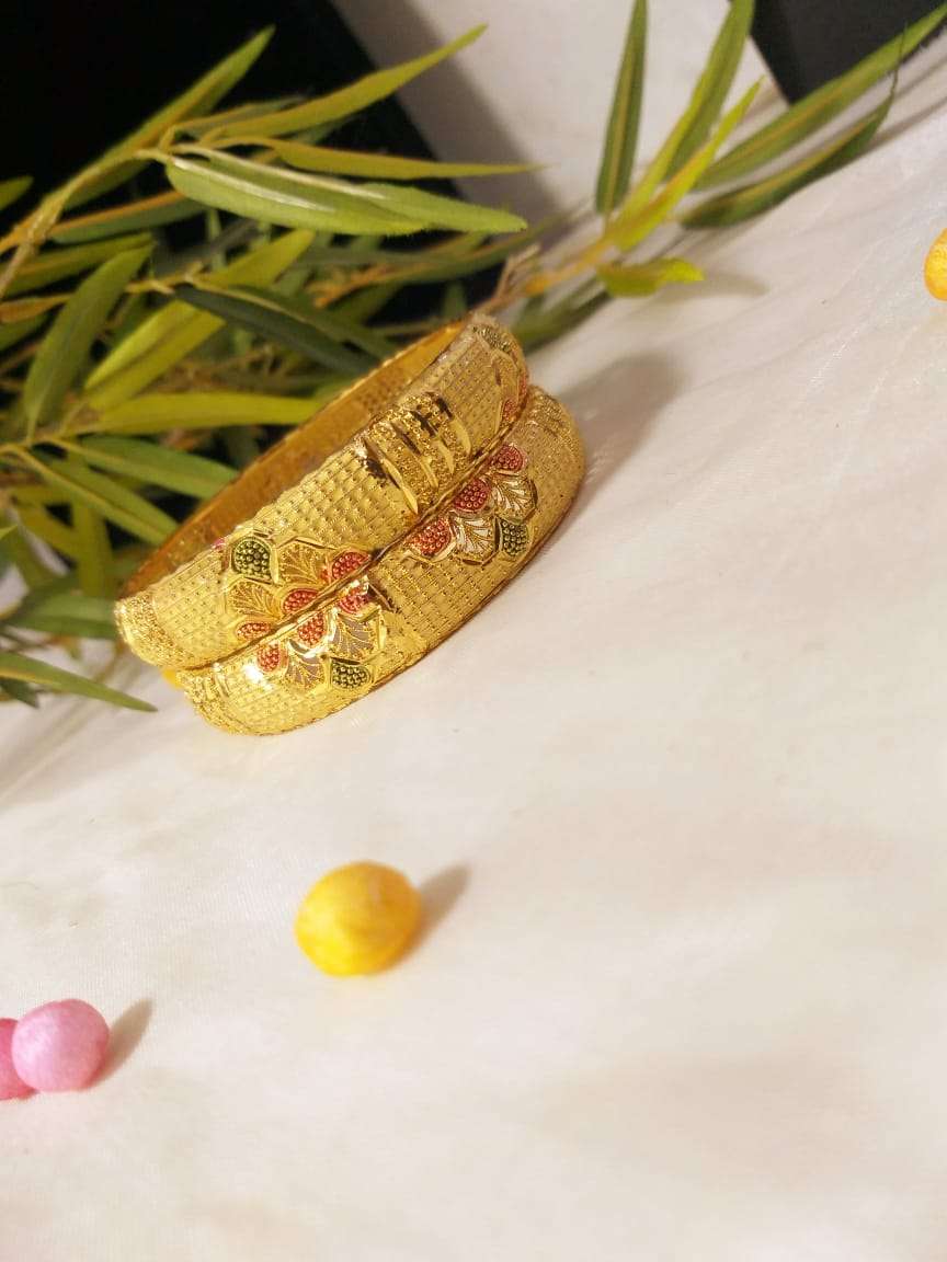 Seven Sky Traditional Fancy Designer Casual Party Golden Bangles for Women