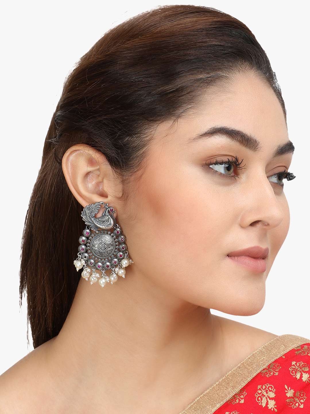 Women Silver-Plated Pink Stone-Studded Peacock Sahpped Earing,Silver-plated,our Silver plating is long lasting and non allergic to skin,and has artificial stones,Secured with a post and back closure.