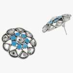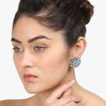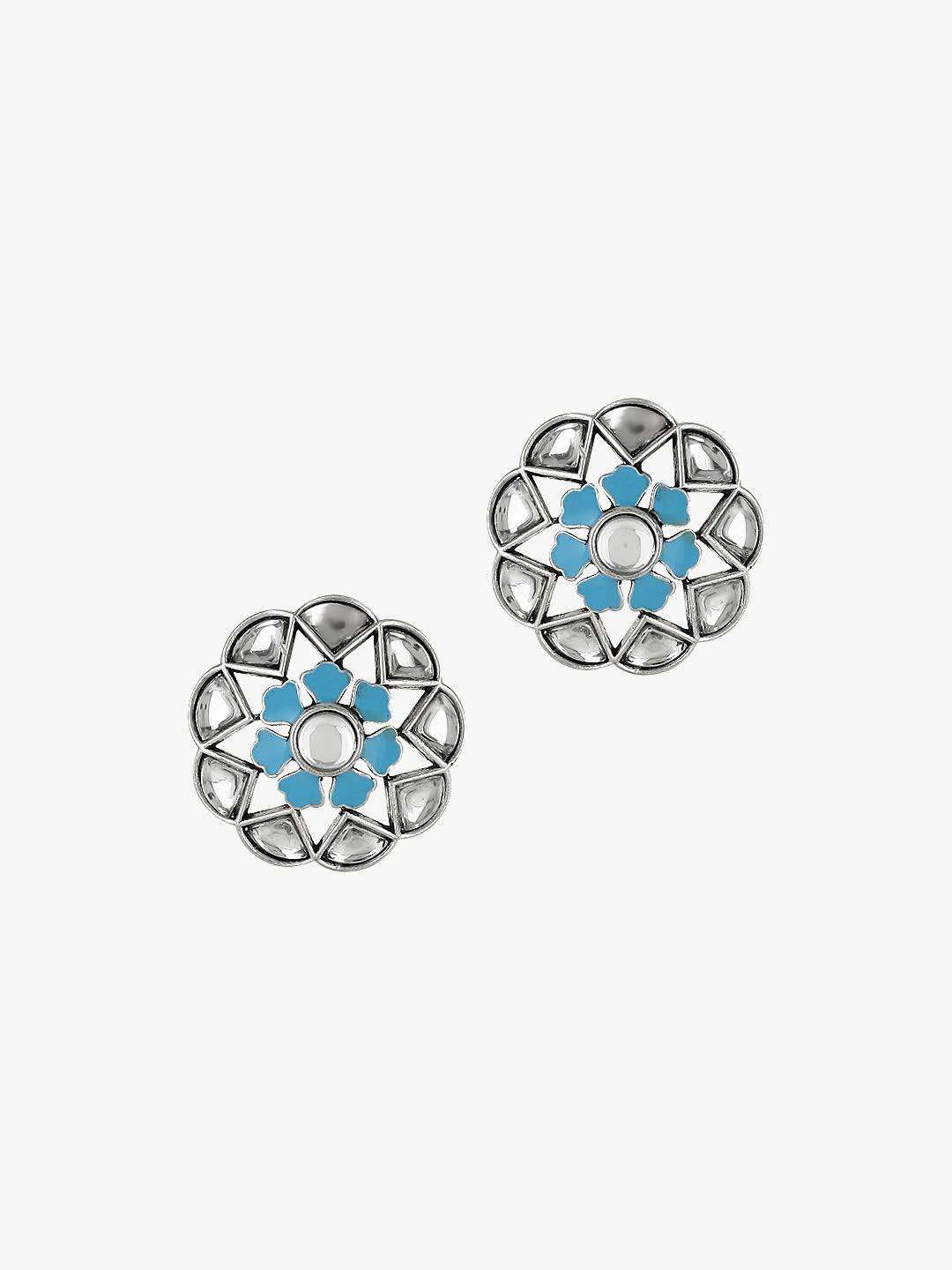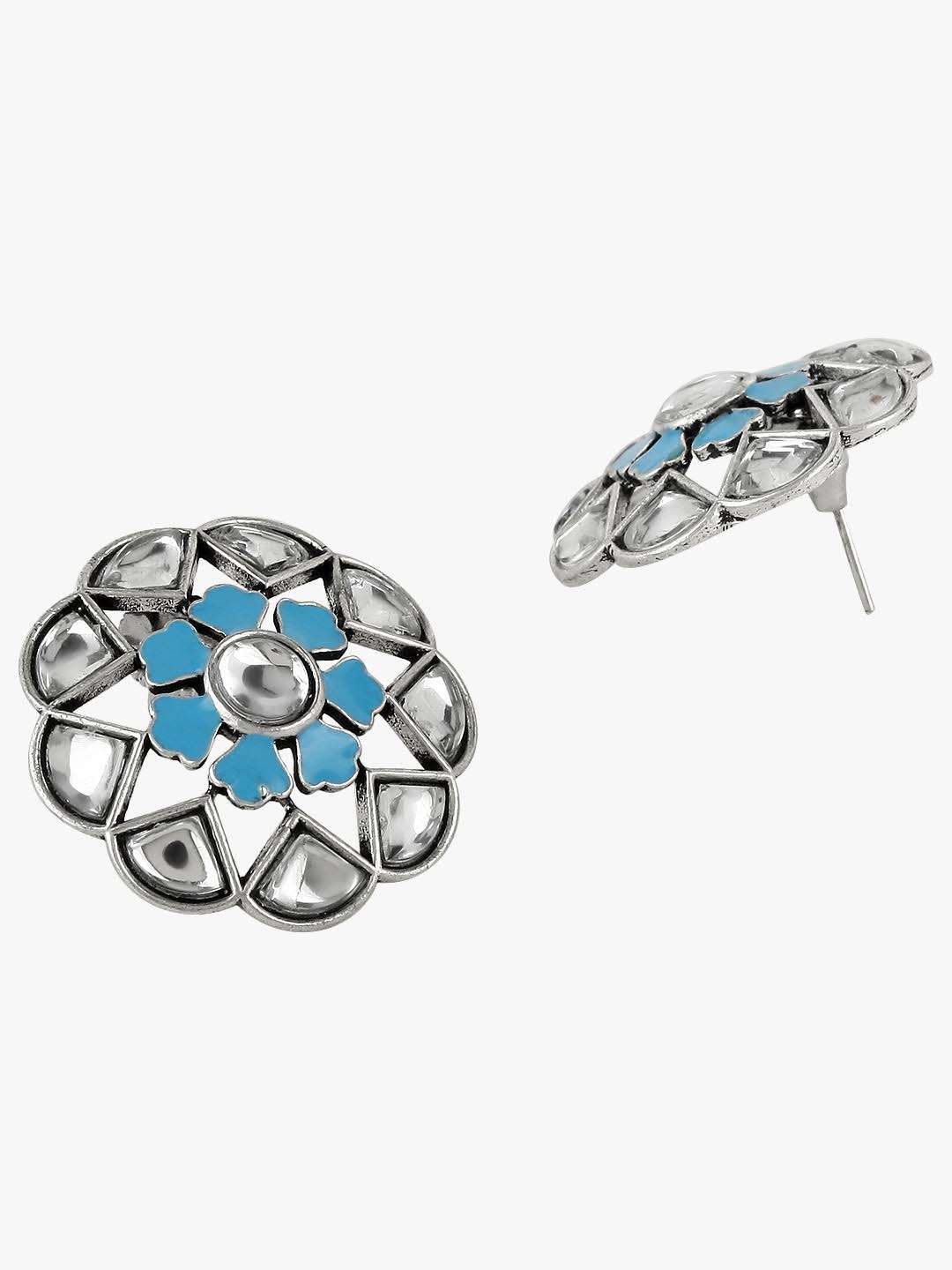 Silver-Toned Circular Earrings, silver-plated, and has artificial stones
