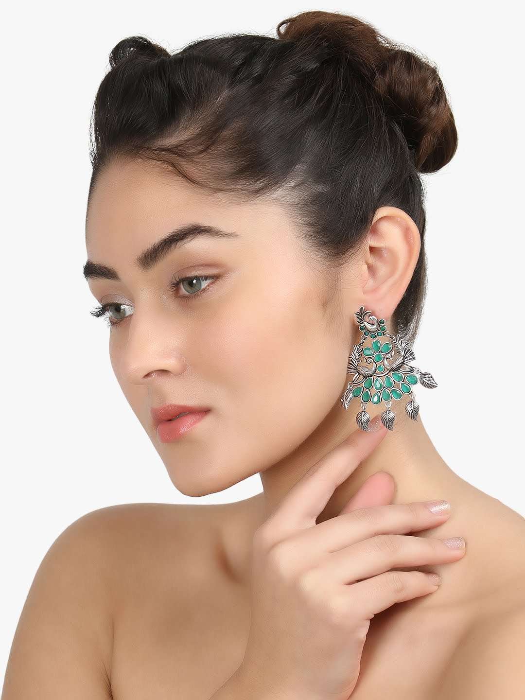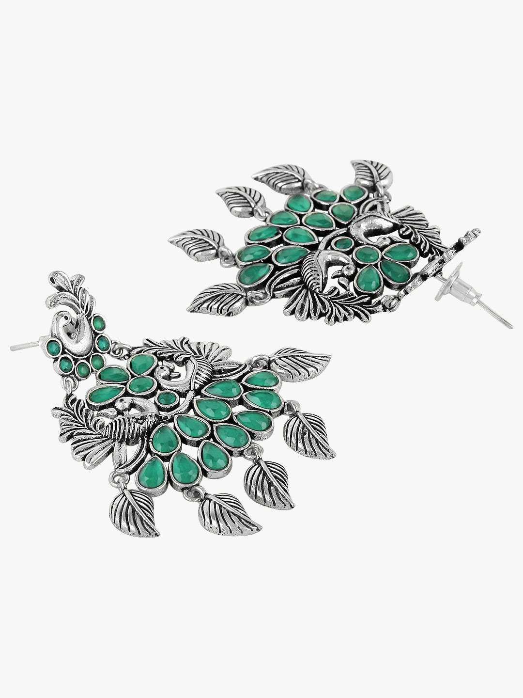 Women Silver-Plated Peacock Shapped Stone-studded Earrings ,our Silver plating is long lasting and non allergic to skin,and has artificial stones,Secured with a post and back closure.