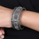 Women Silver Plated Pearl Beaded Bangles, Our Silver Plated is non-allergic to Skin