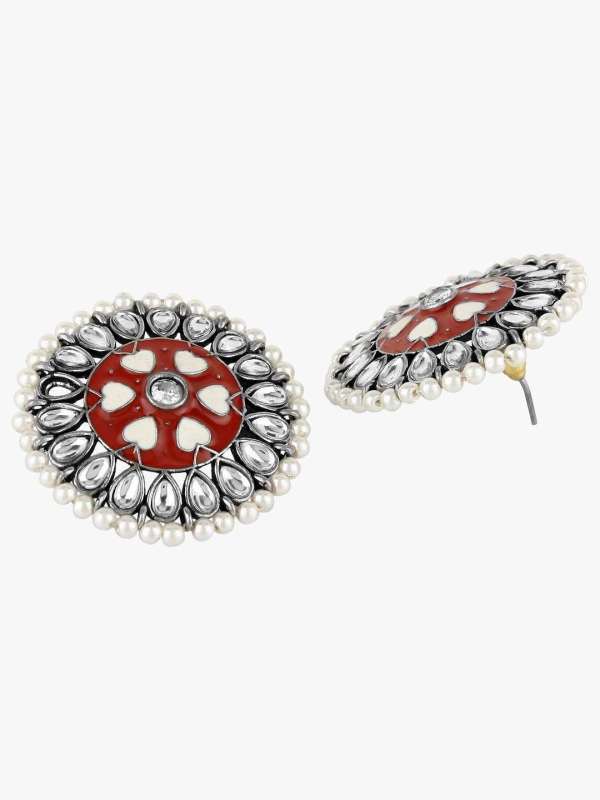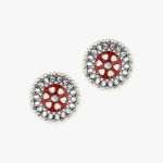 Silver-plated and Red & White Circular Earrings, and has artificial stones and beads,Secured with a post and back,our silver plating is long lasting and non allergic to skin