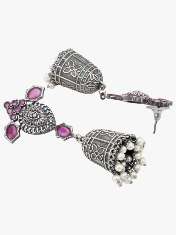 Women Silver-Plated Pink Dome Shapped Jhumka,Silver-plated,our Silver plating is long lasting and non allergic to skin,and has artificial stones,Secured with a post and back closure. Beautiful Looks at One Glance – with Intricate High Polish creates Glamorous Reflections and adds Luxurious Looks