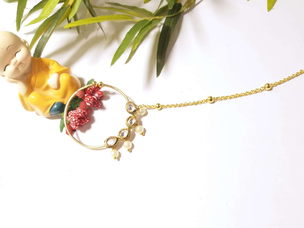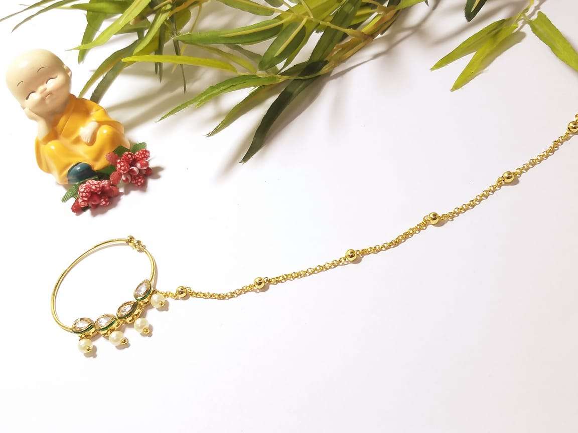 Traditional Ethnic Gold Plated Floral Nose Rings With Chain For Women