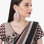 White and Red Stone-Studded Circular Shapped Drop Earrings ,our Fabric is long lasting and non allergic to skin,and has artificial stones,Secured with a post and back closure.