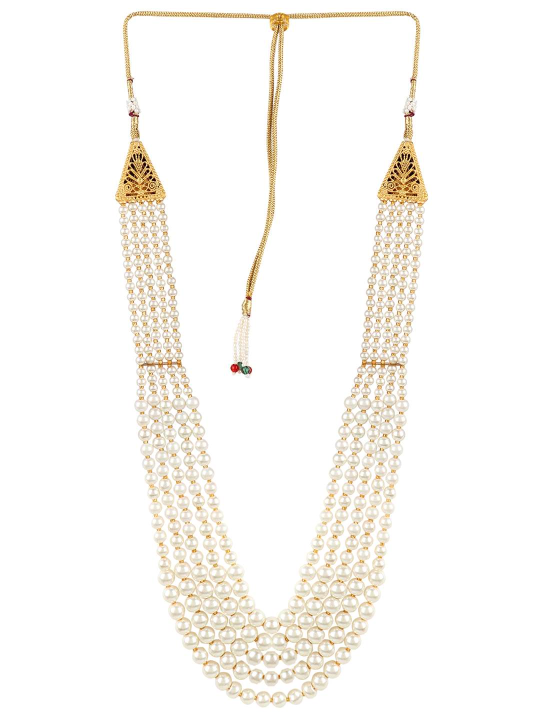 This jewellery set consists of a necklace and a pair of earrings Gold-plated and stranded necklace with Drawstring closure, A pair of matching earrings, secured with a post and back closure, Gold plating is long-lasting and non-allergic to skin
