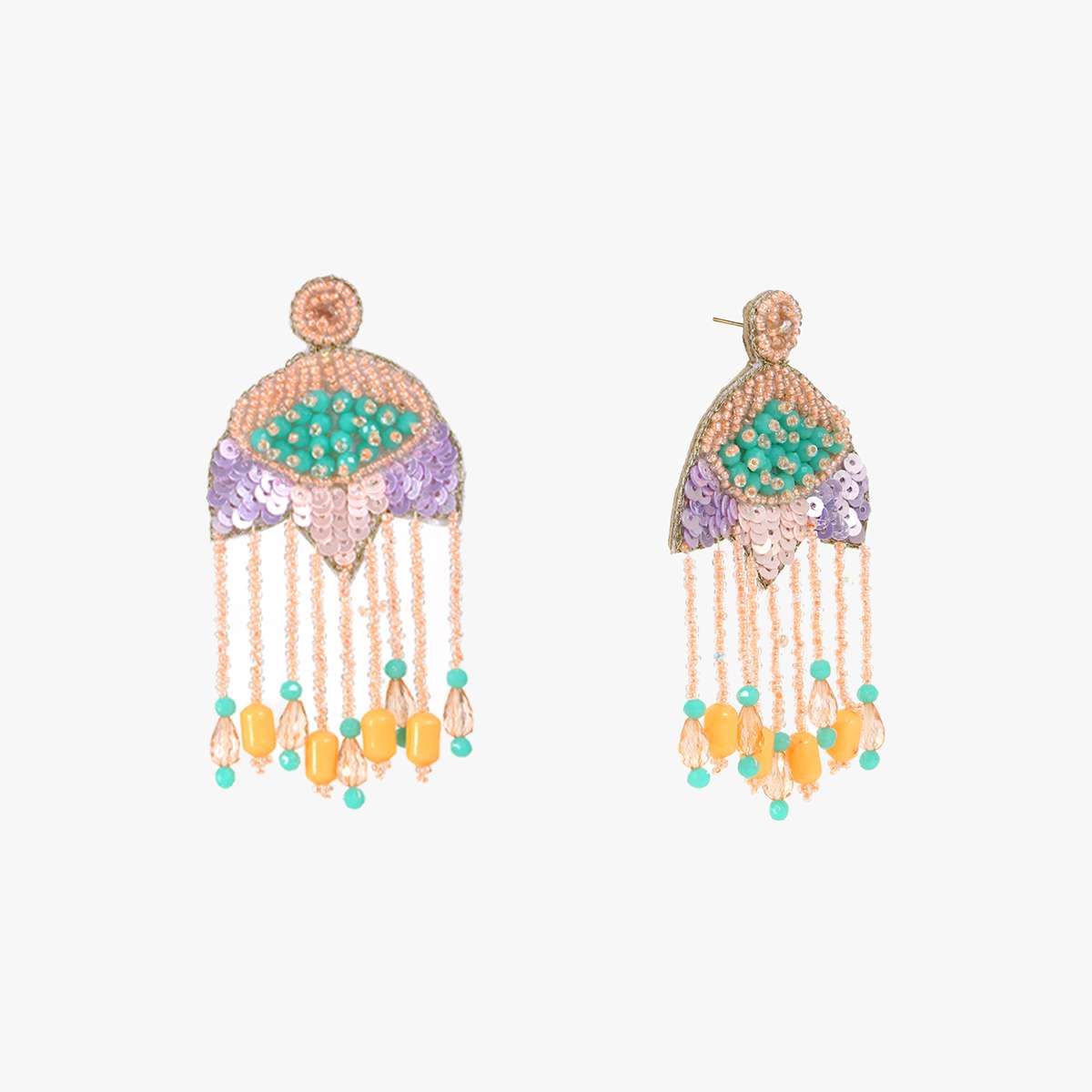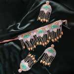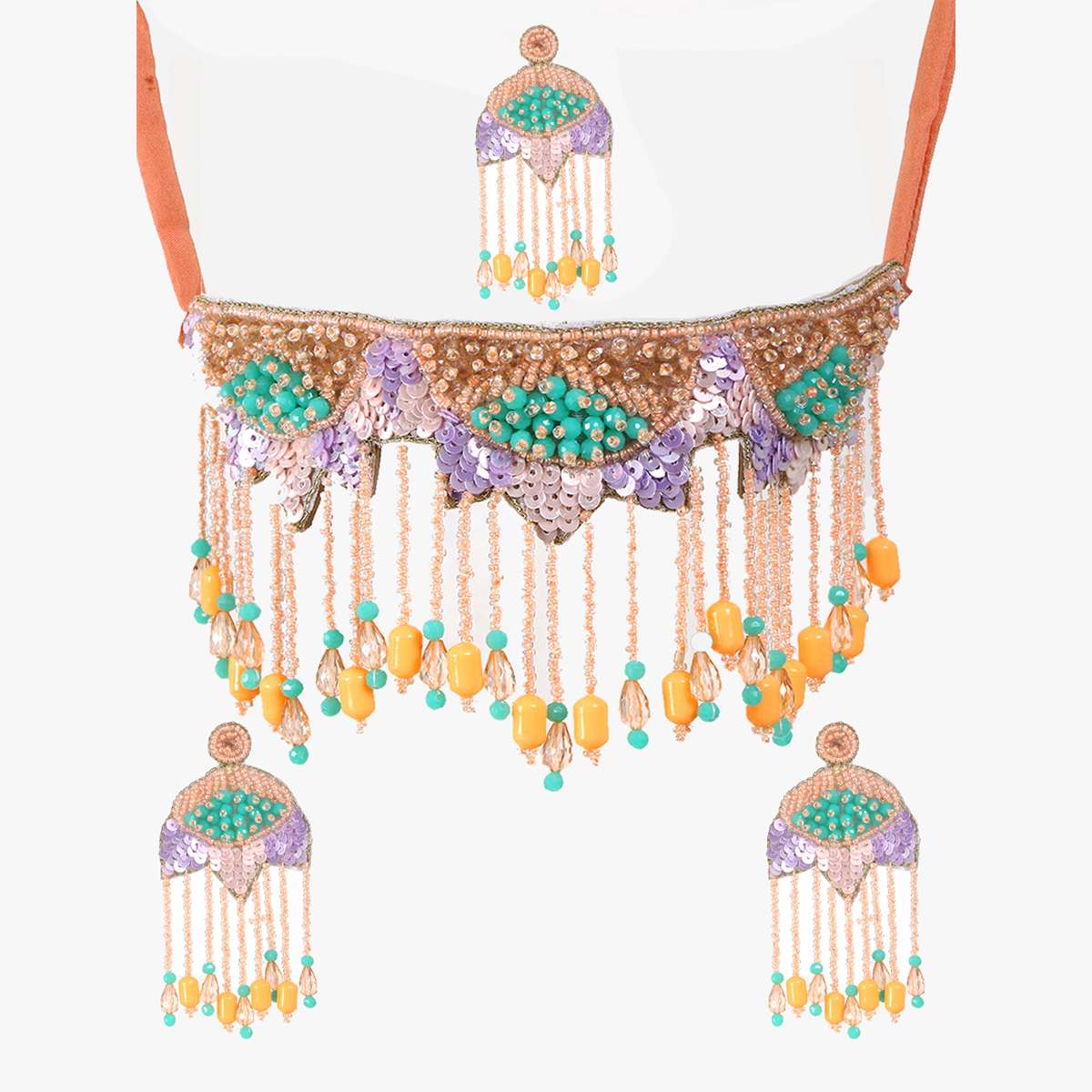 Woman Peach Beaded with Mangtika Handcrafted Jewellery Set,Material and stone type: alloy with artificial stones and beads,secured with a drawstring closure, A pair of matching earrings, secured with a post and back closure, This is long-lasting and non-allergic to skin