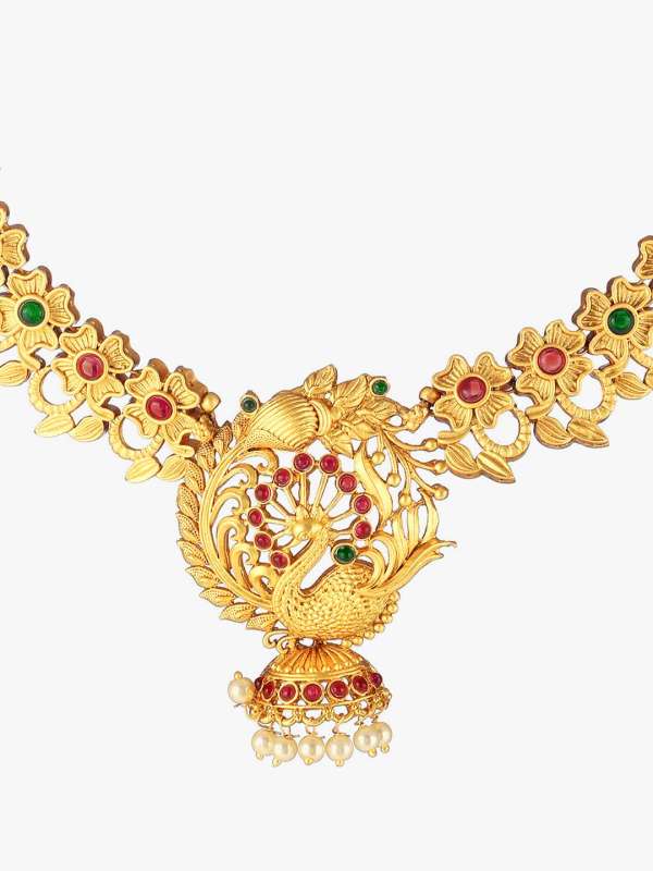 This Jewellery set consists of a necklace and a pair of earrings Gold-plated and stranded necklace with Drawstring closure, A pair of matching earrings, secured with a post and back closure, Gold plating is long-lasting and non-allergic to skin.