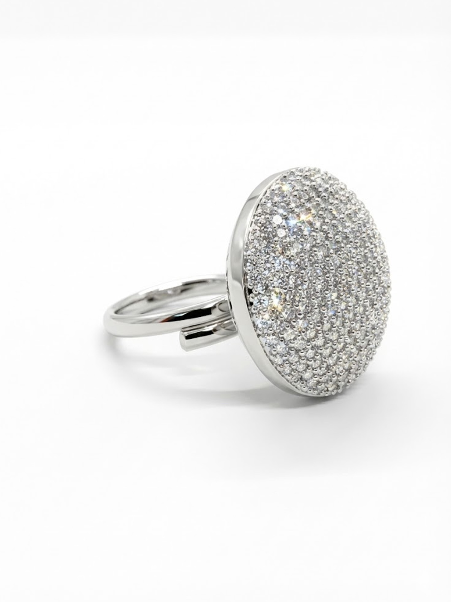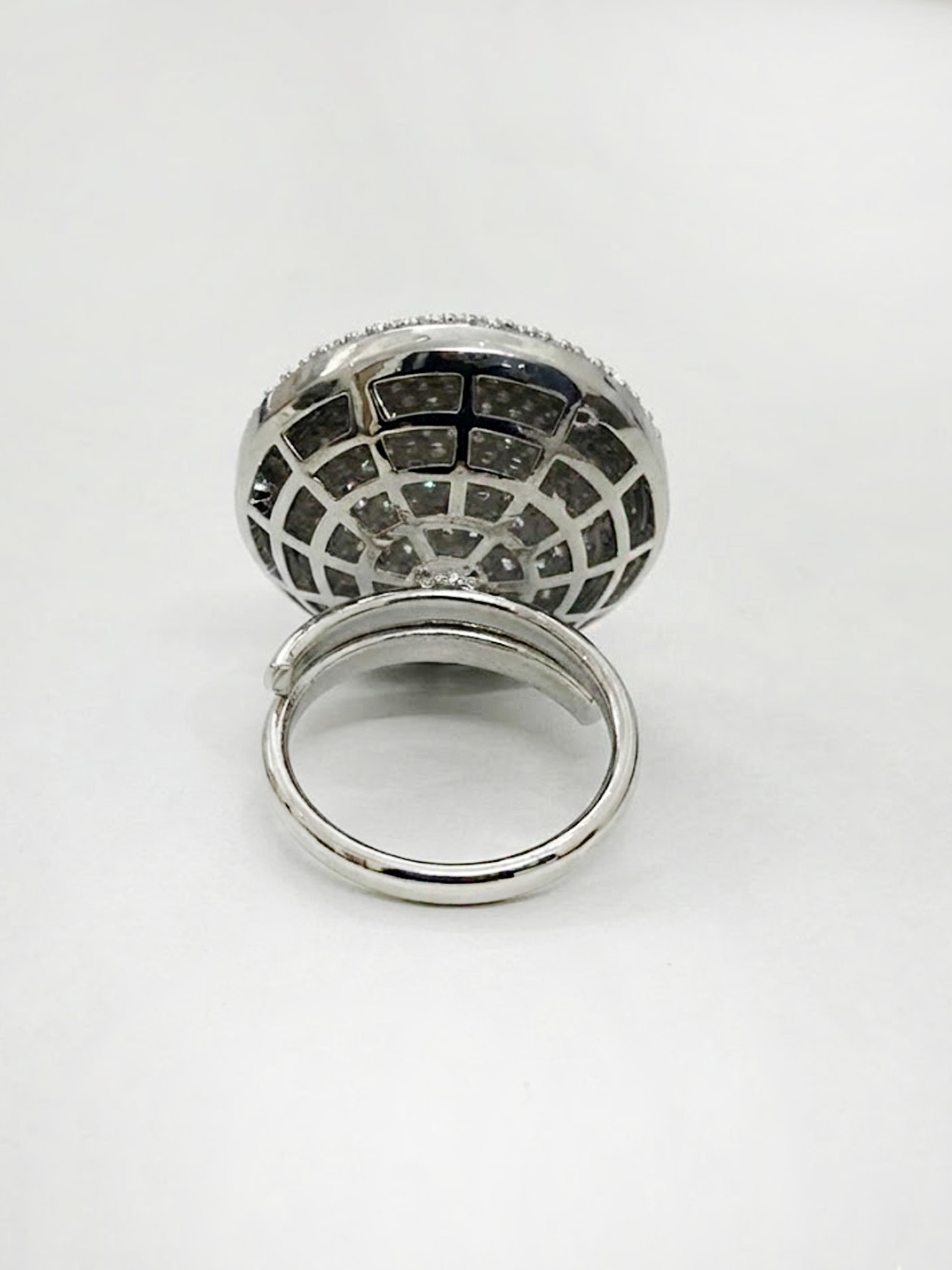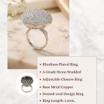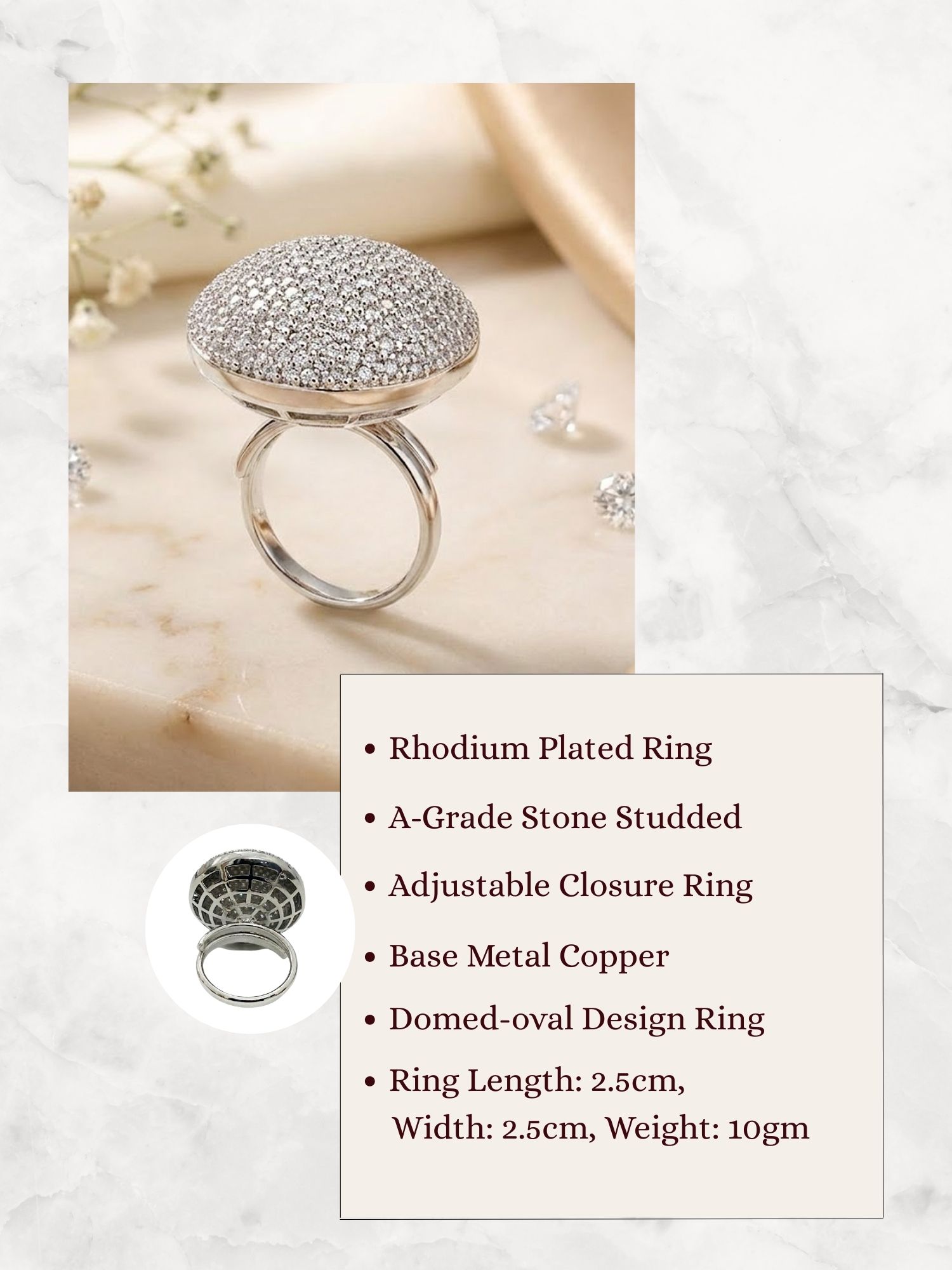 Glamour to your party look with this stunning ball design statement dome ring. Featuring a radiant cluster of sparkling cubic zirconia stones, this ring creates a bold, eye-catching effect that shines from every angle. The rounded dome silhouette offers a modern yet elegant appeal, making it perfect for parties, celebrations, and special occasions. Designed to stand out while remaining comfortable to wear, this statement ring is a beautiful blend of sophistication and sparkle—an ideal accessory for women who love bold, fashionable jewelry.
