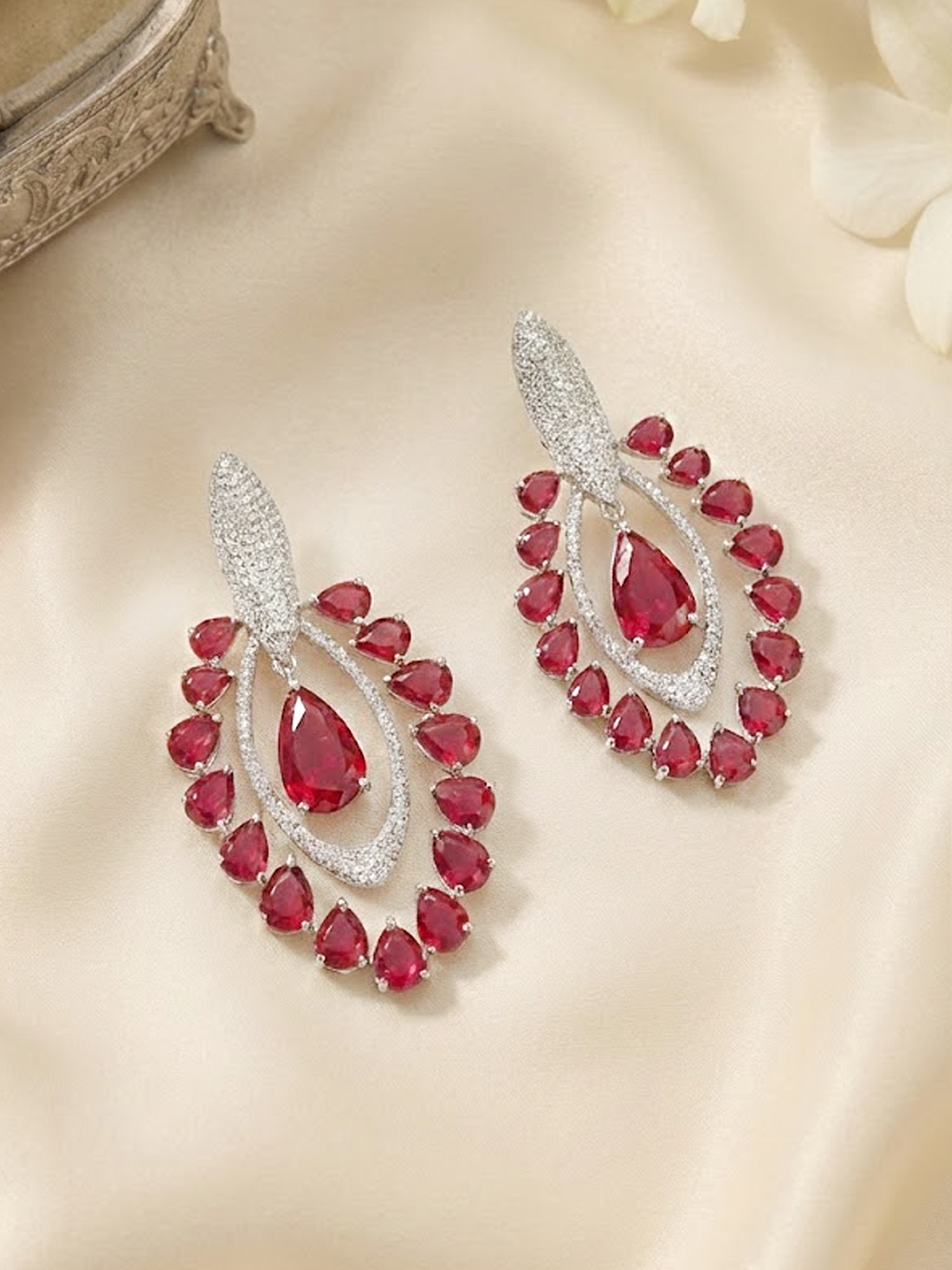 | These beautiful red stone drop earrings. Designed to enhance both traditional and contemporary outfits, these earrings feature a rich red stone that adds a bold yet graceful charm. Lightweight and comfortable to wear, they are perfect for daily wear as well as special occasions. The stylish drop design offers a flattering silhouette, making them an ideal accessory for weddings, parties, festivals, or gifting. |