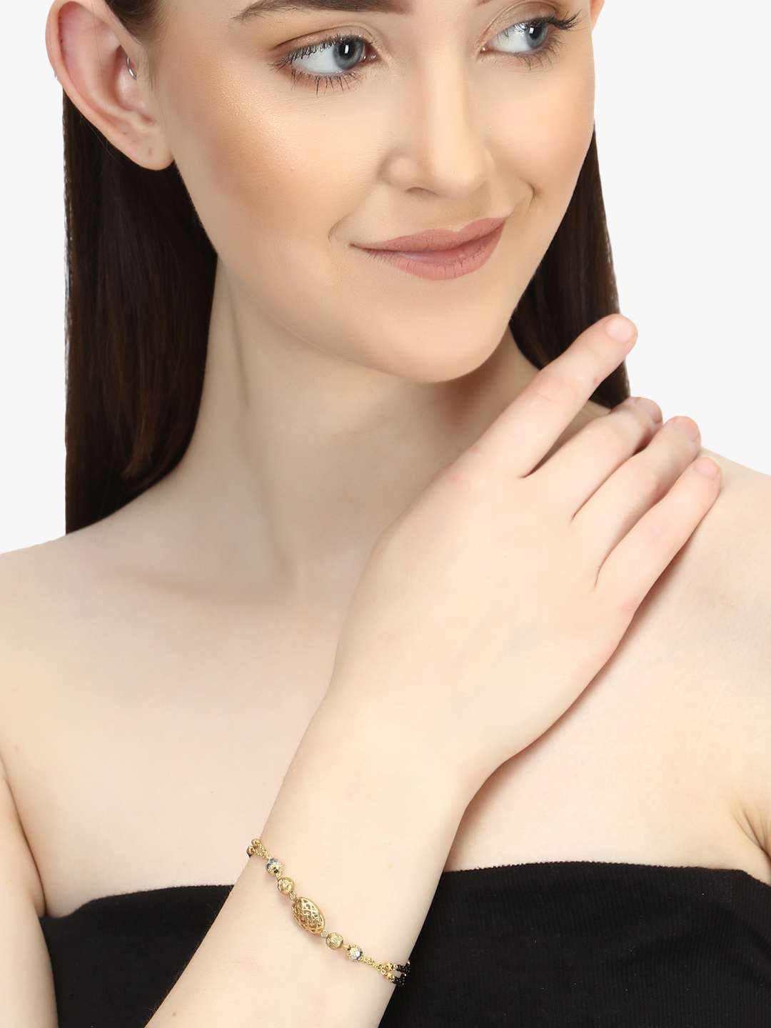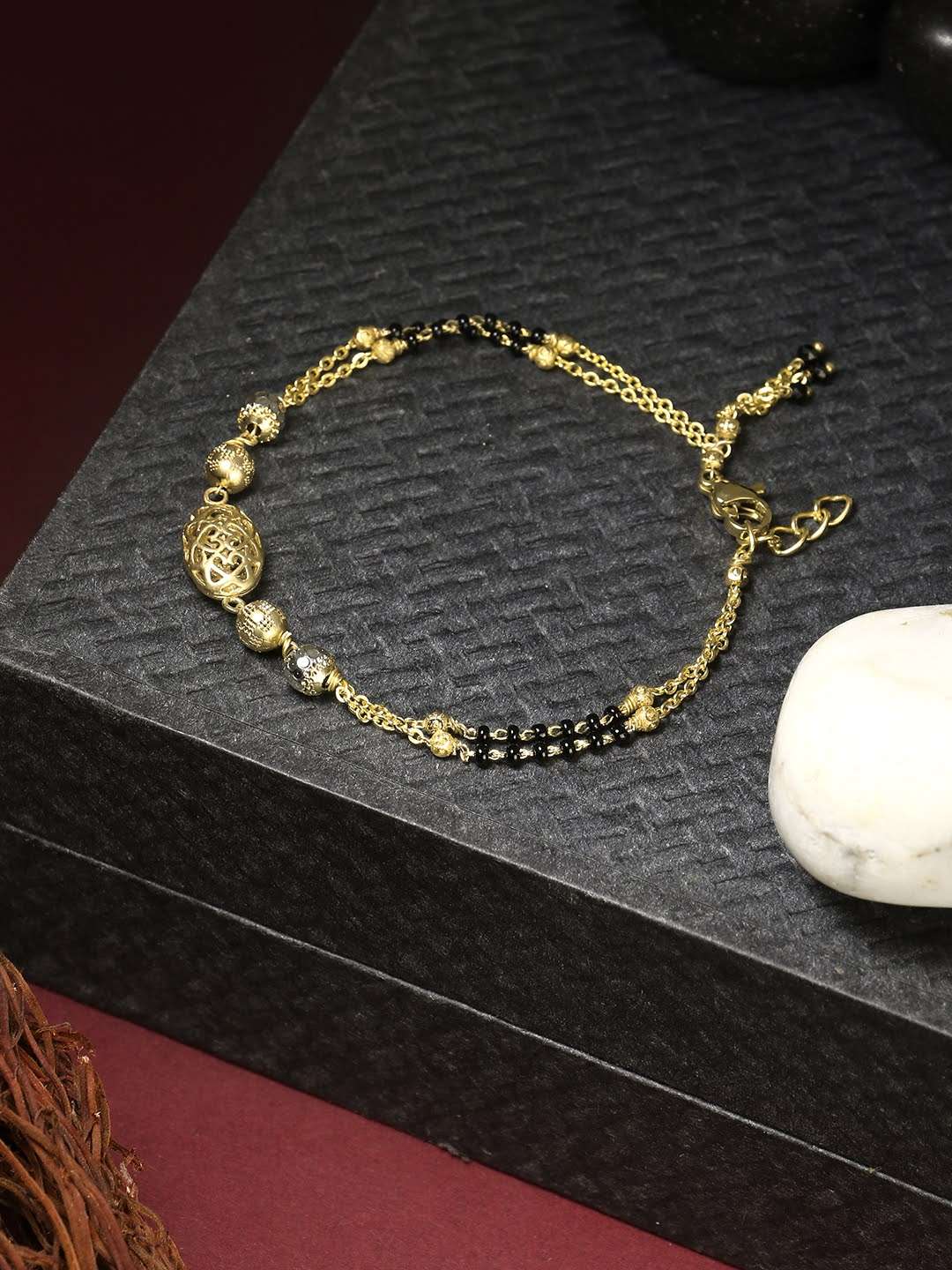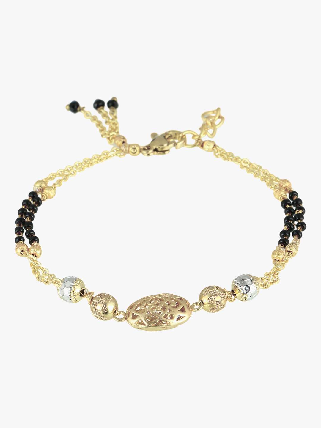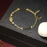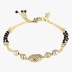 24CT Women Stone-Studded gold-plated black beaded dual stranded mangalsutra bracelet , secured with an Lobster Closure,our Gold-plating is long lasting and non allergic to skin.