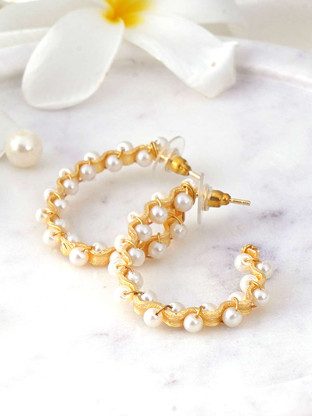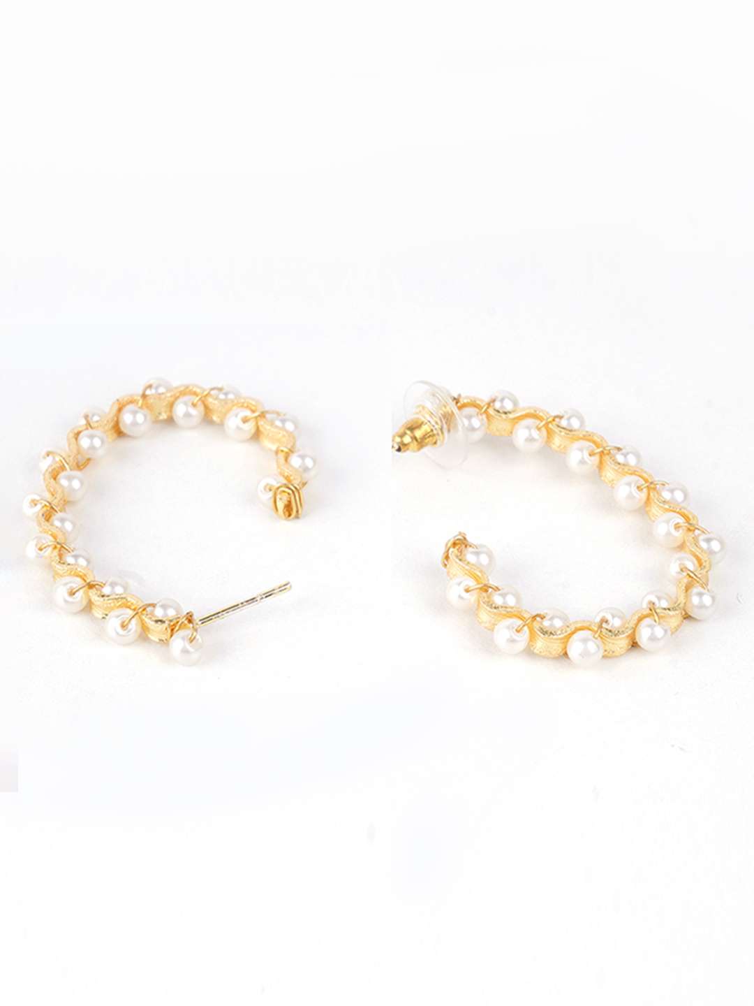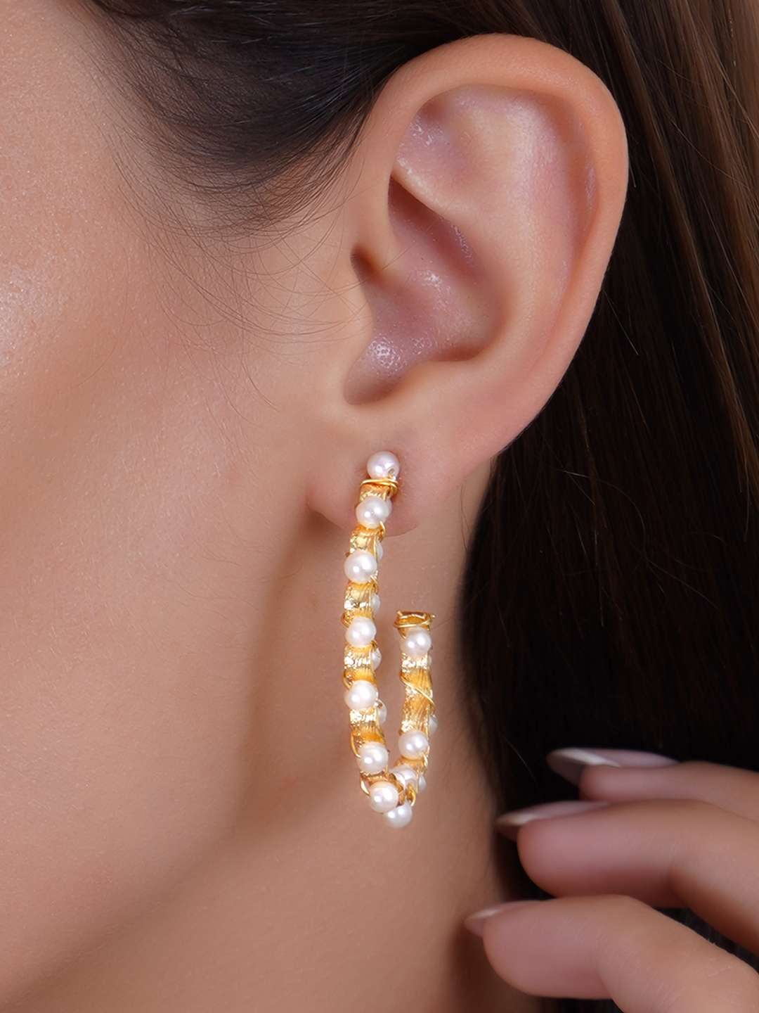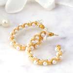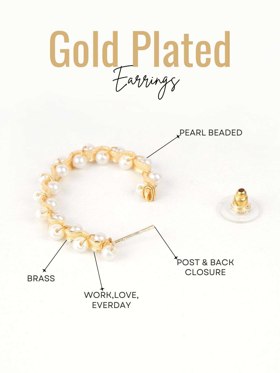 Women Gold-Plated Pearl Half Hoop Earrings. Our Gold Plating is long lasting and non-allergic to skin. It Give you a beautiful elegant look with our outfit.