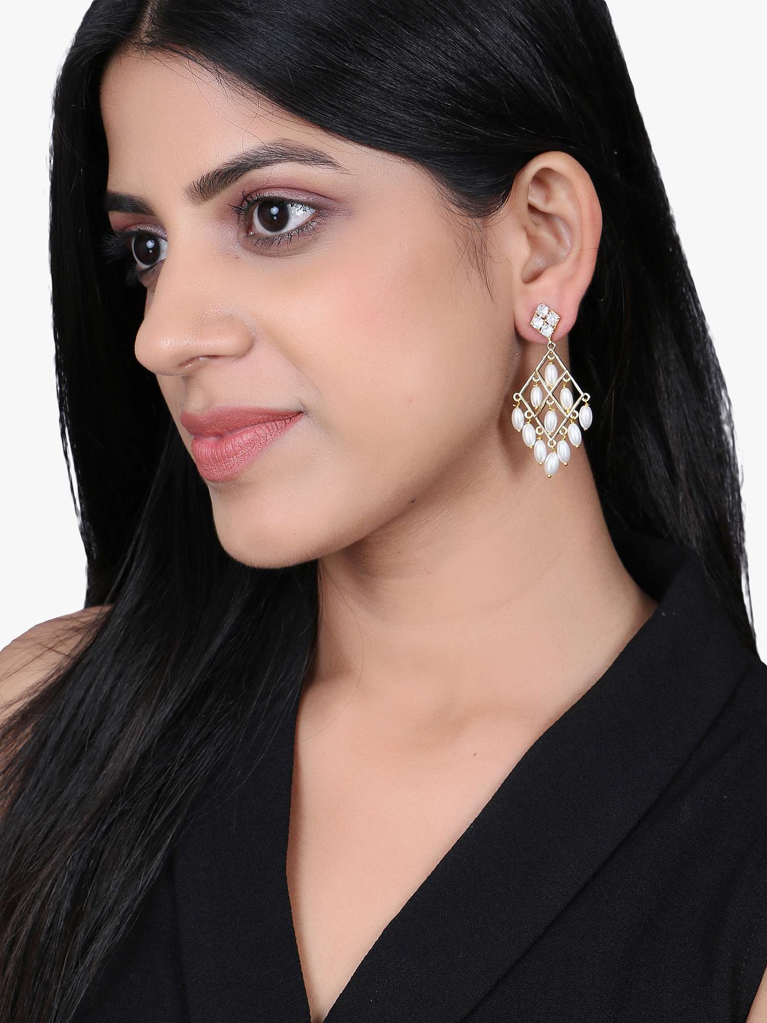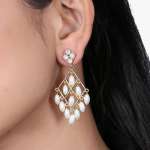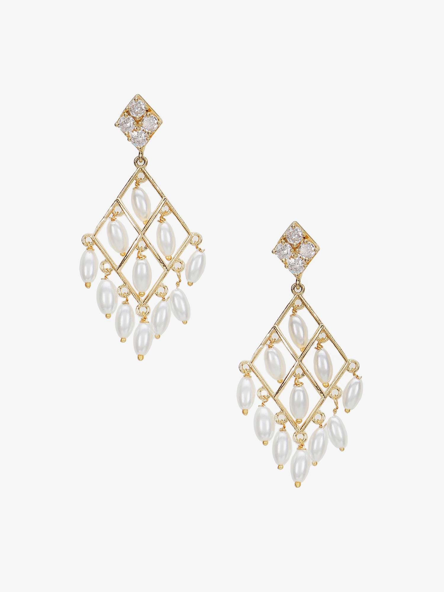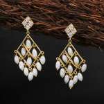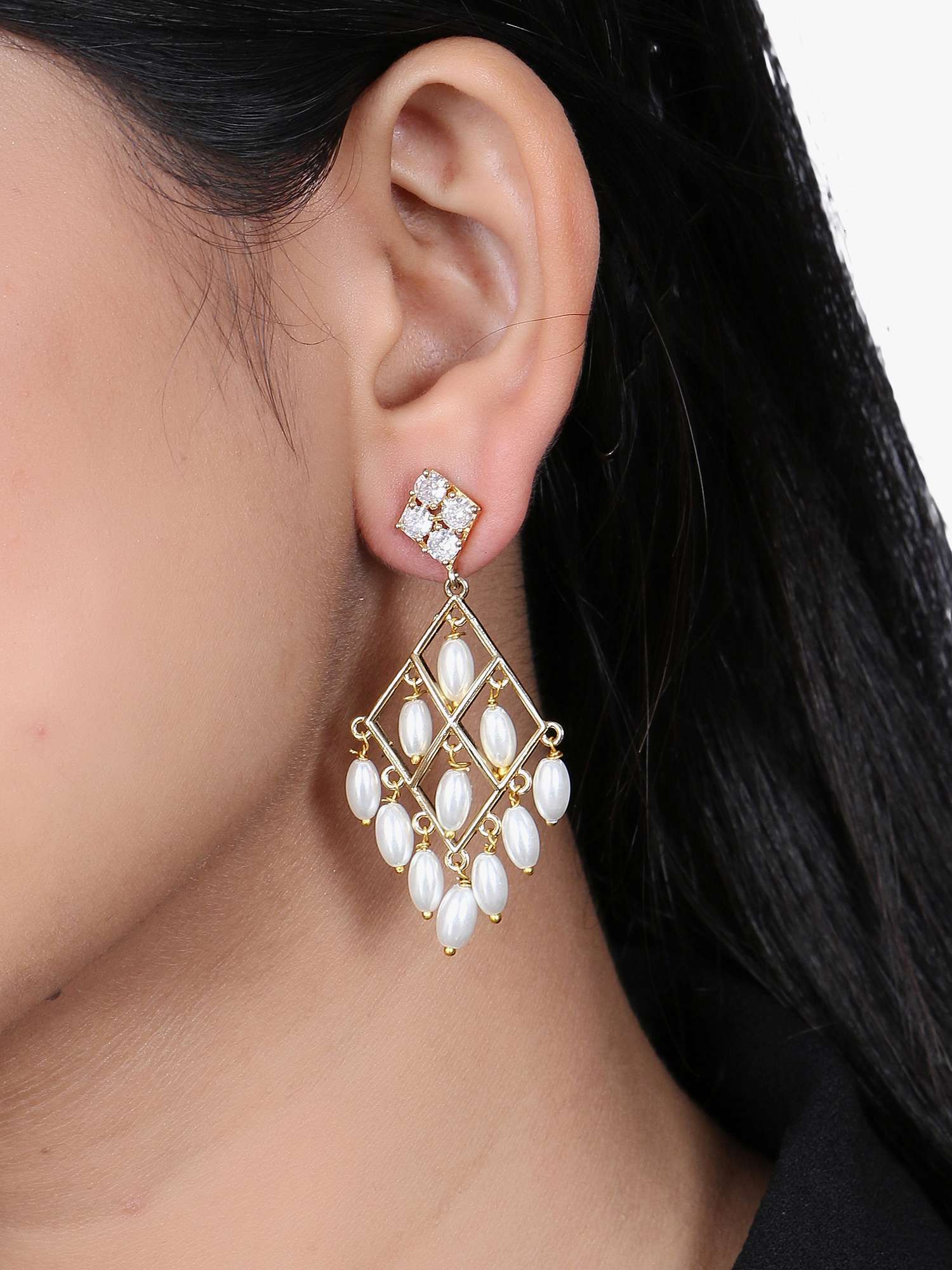 Women Gold Plated Rice Pearl Tessel Earrings,Our Gold plating is long lasting and non allergic to skin,and has artificial stones,Secured with a fraction Back closure.
