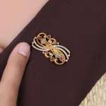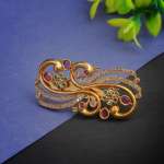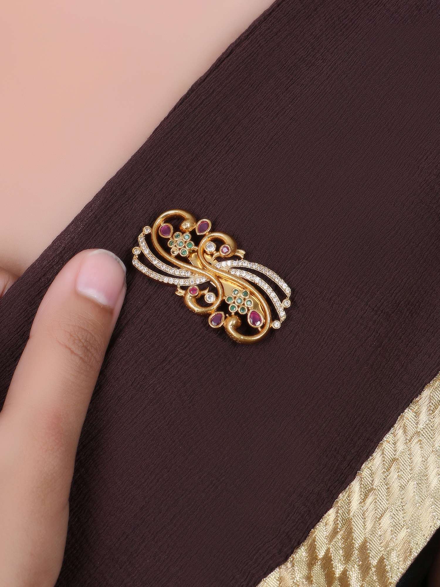 Women Gold Plated White Green and Red Stone Studded all around Peacock Design Brooch. This Brooch is of Gold-plated with Pin Closure. Our Gold plating is long lasting and non allergic to skin.