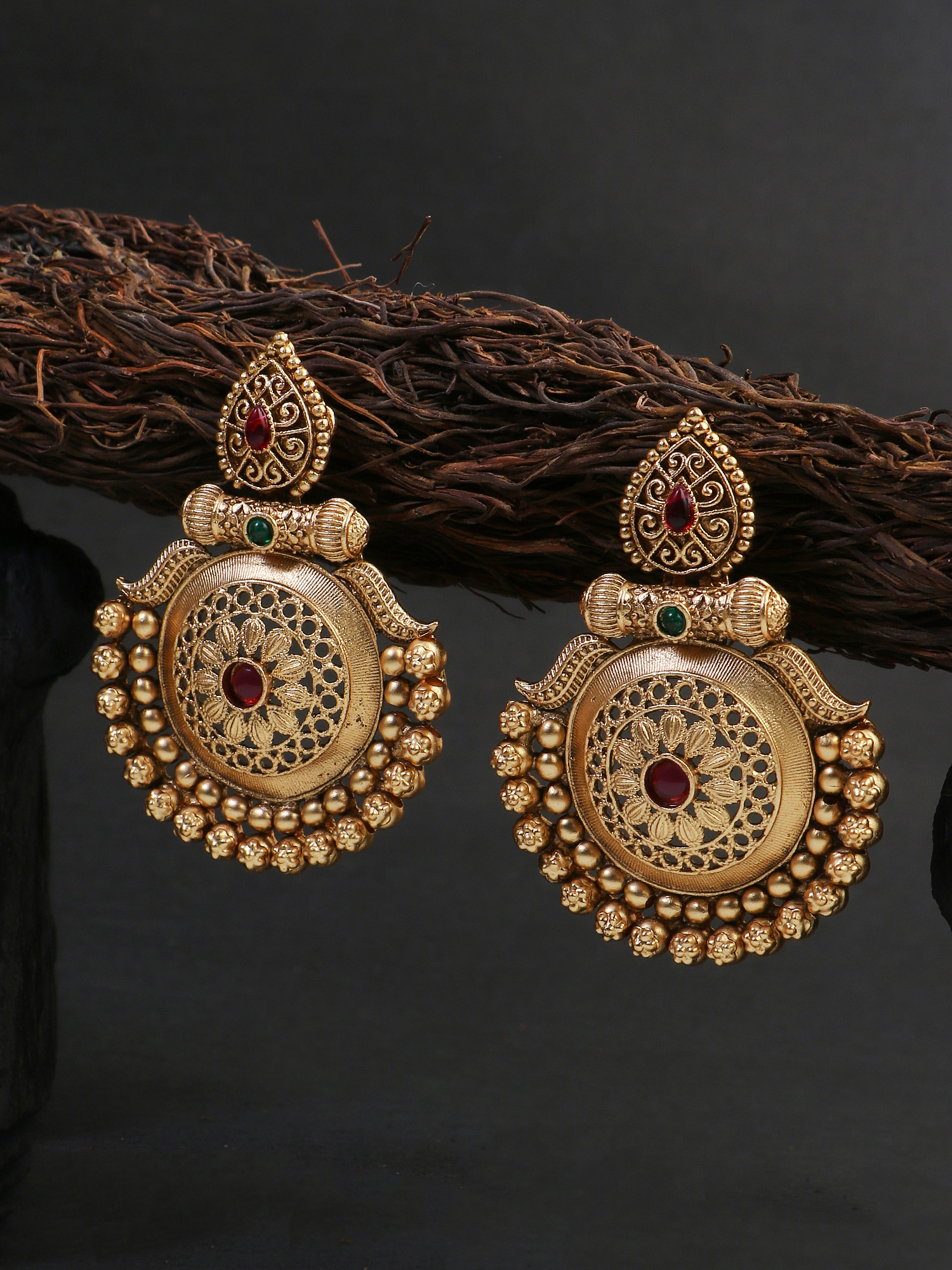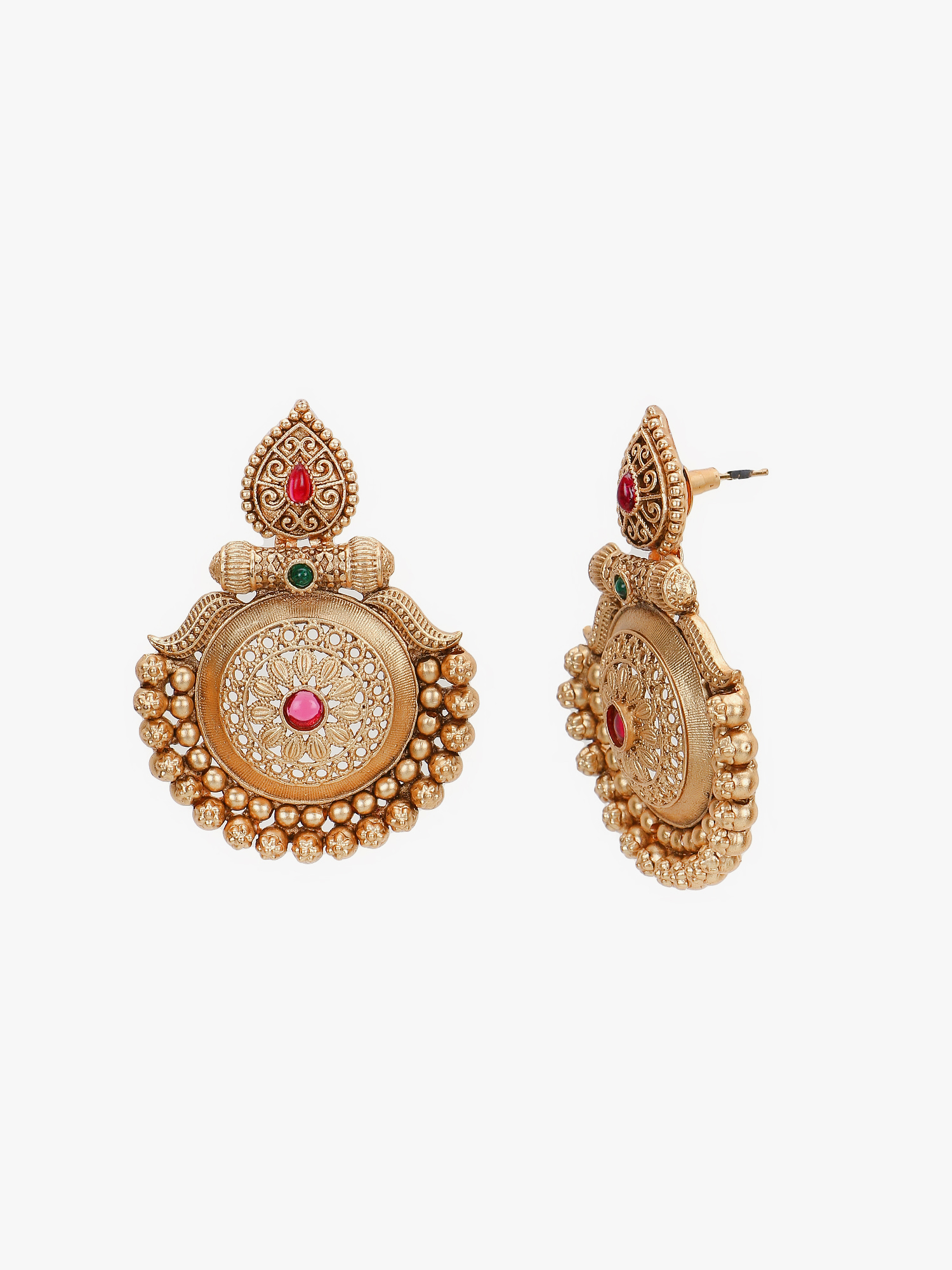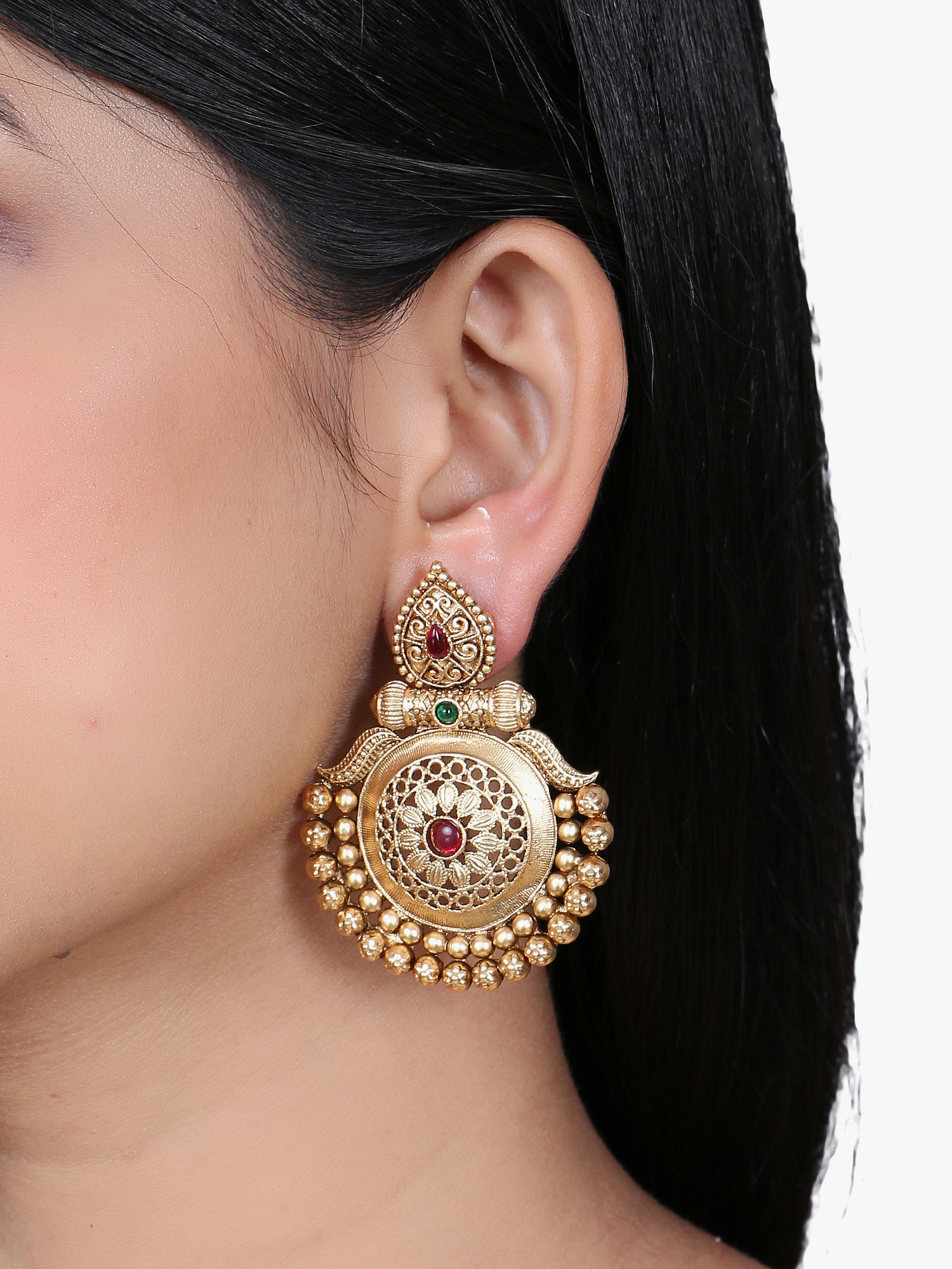 Women Gold Plated Stone Studded Pearl Beaded Earrings,Our Gold plating is long lasting and non allergic to skin,and has artificial stones,Secured with a fraction Back closure.