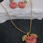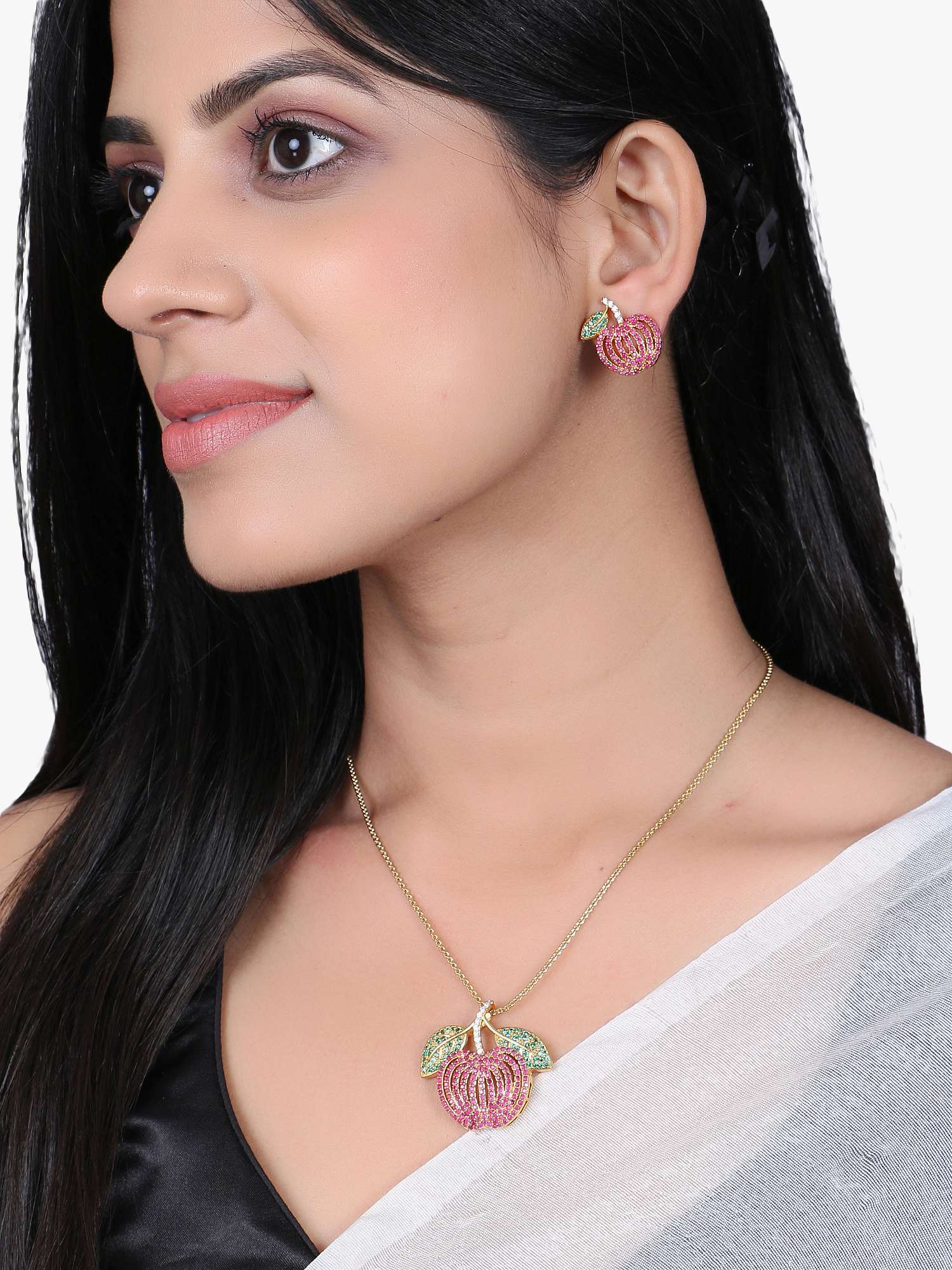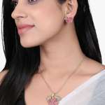 The Pendent Set Stone Studded, secured with a Locked-Hook closure,A pair of matching embellished Drop earrings, secured with post and back closure,Note: Gold-Plating is long lasting and non allergic to skin