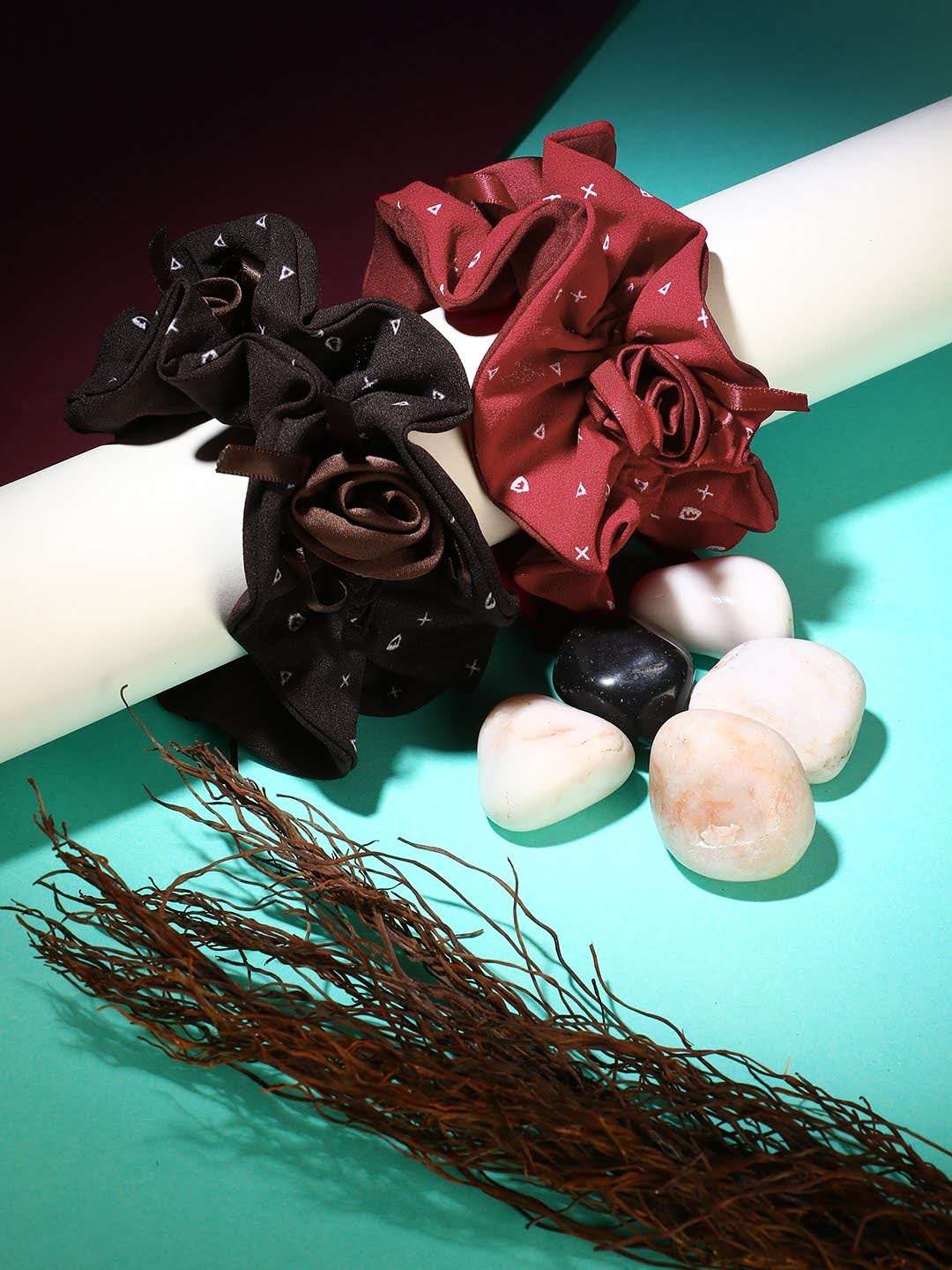 Set Of 2 maroon and brown ponytail holders