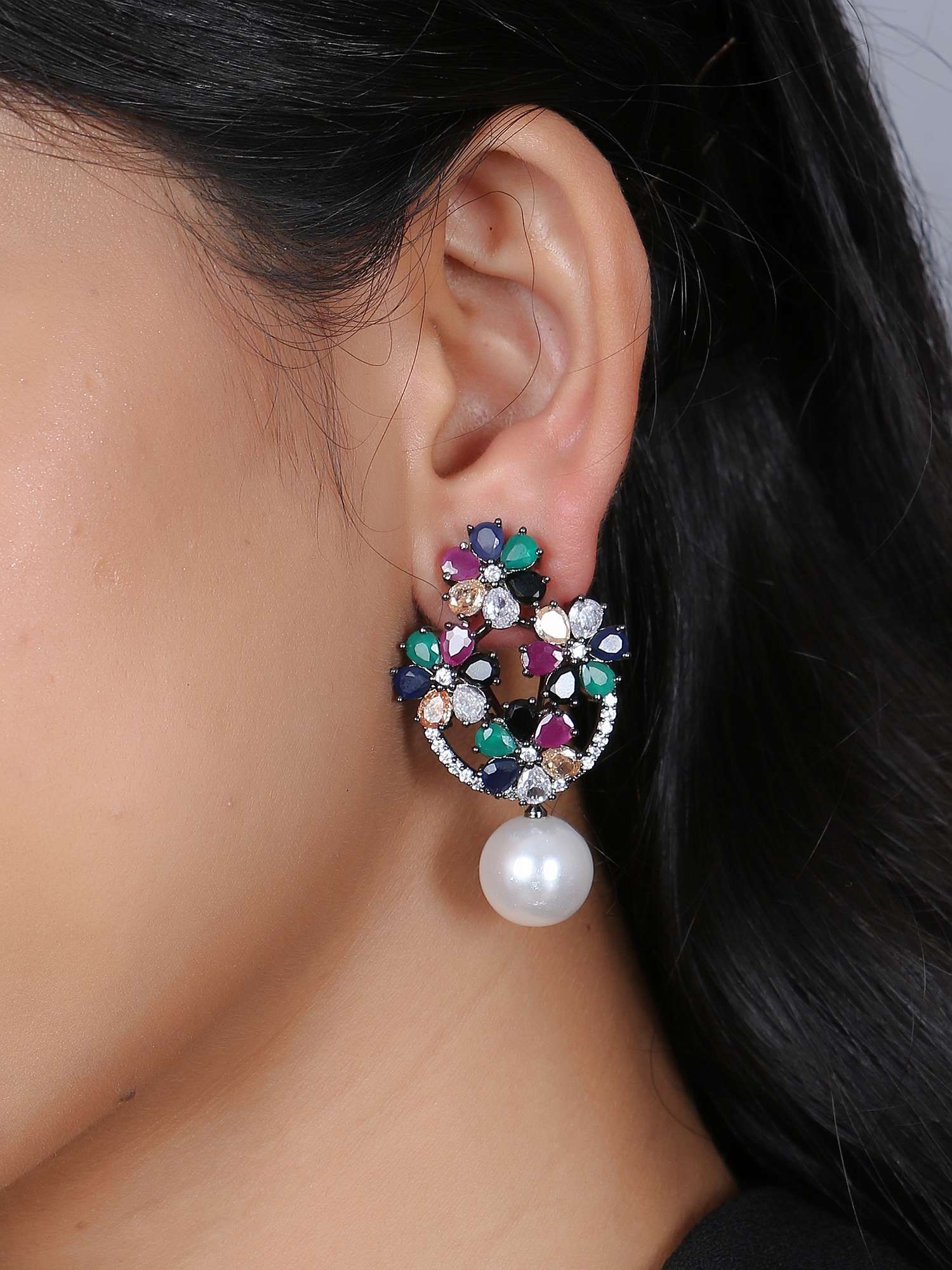 Women Multicolor Silver-Plated Vitorian Earrings, Our Silver plating is long lasting and non allergic to skin,and has artificial stones,Secured with a fraction Back closure.