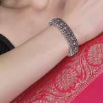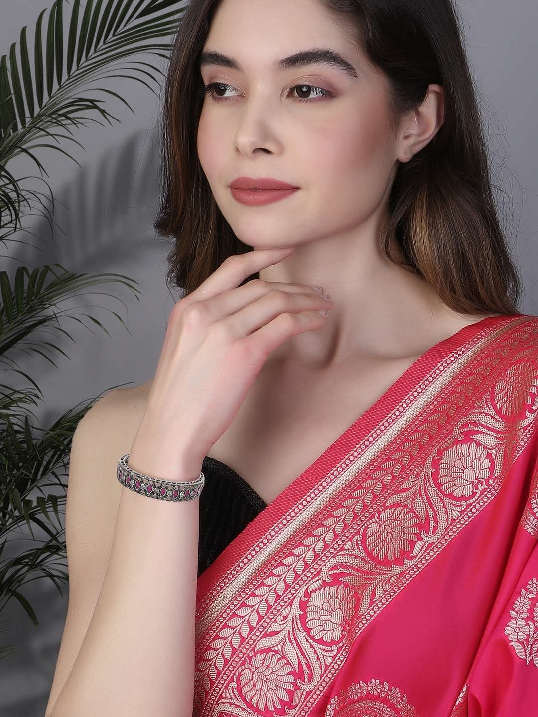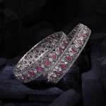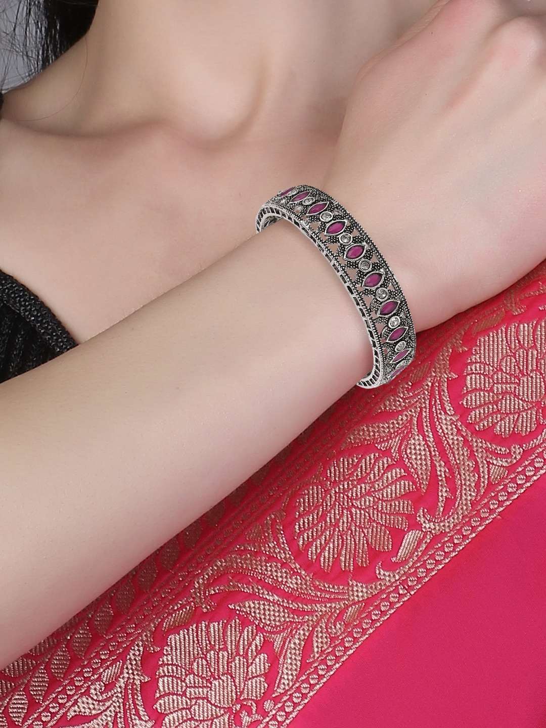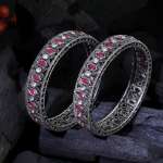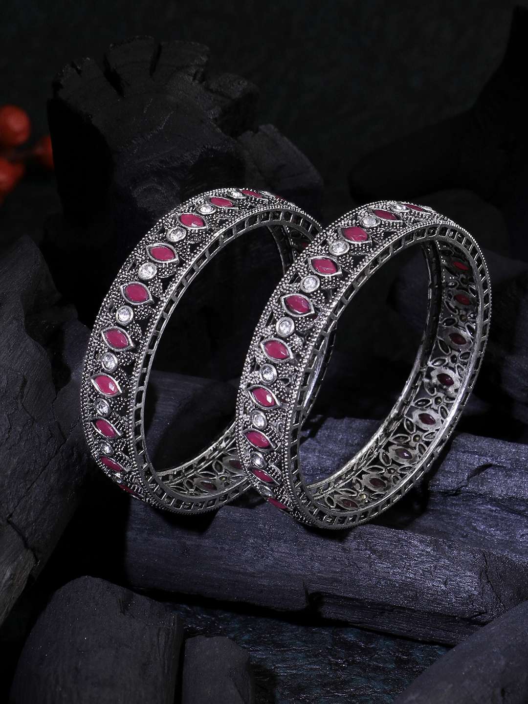 Women Oxidised Silver-Plated Kundan and Red Stone-Studded Bangles. Our gold plating is long lasting and non allergic to skin.