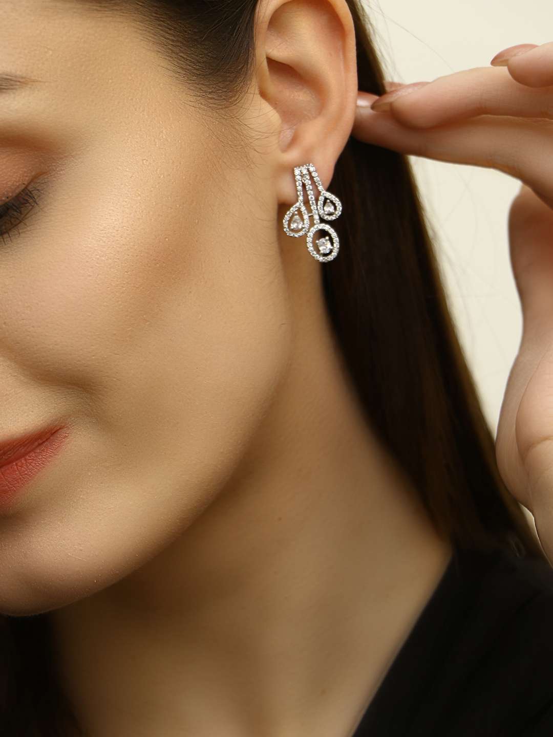 Women Rhodium Plated Stone Studded Earrings. Our Rhodium Plating is non-allergic to skin