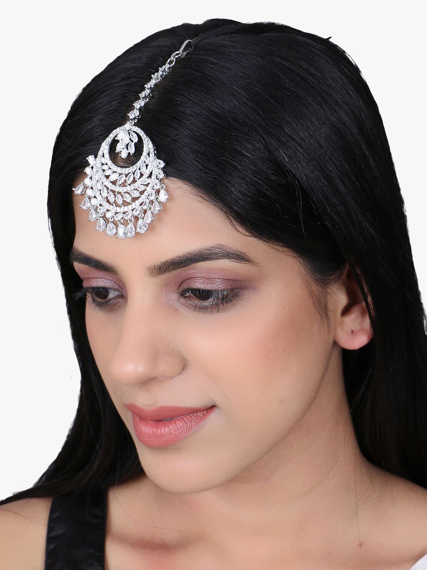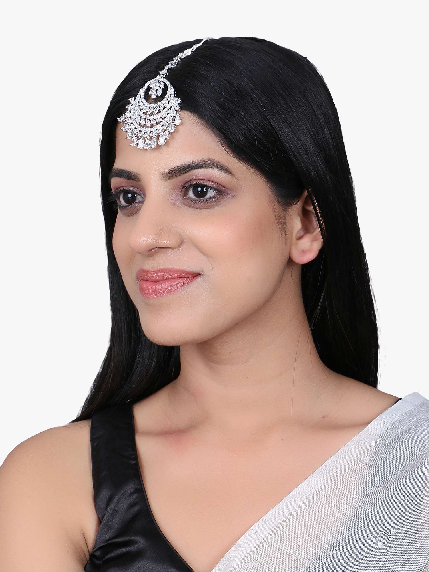 Women Gold-Plated Kundan Stone-Studded White Pearl Beaded Maangtikka, 24CT gold-plated Stone-Studded maang tikka centerpiece secured with a hook closure,Features: Gold plating is long lasting and non allergic to skin”