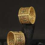 Women Set of 2 24CT Gold-plated Red and Green Stone-Studded handcrafted bangles,each has an intricate textured pattern,secured with a screw closure,our Gold plating is long lasting and non allergic to skin.These are openable Banglesand very easy to wear.