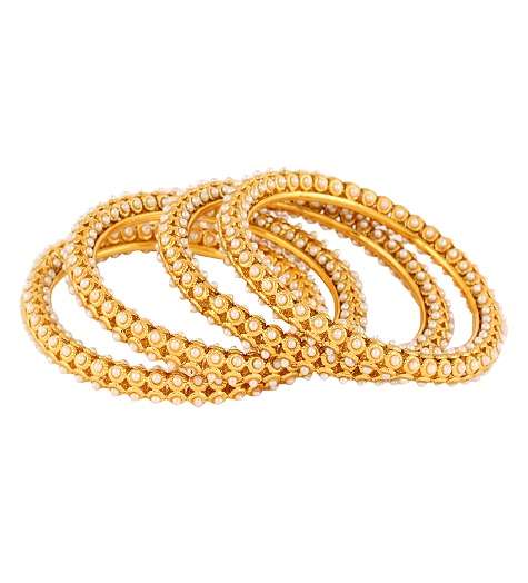 Women Set of 4 24CT gold-plated handcrafted Stone-Studded bangles, each has an intricate textured pattern, our gold plating is long lasting and non allergic to skin.