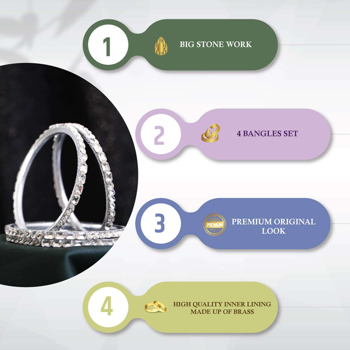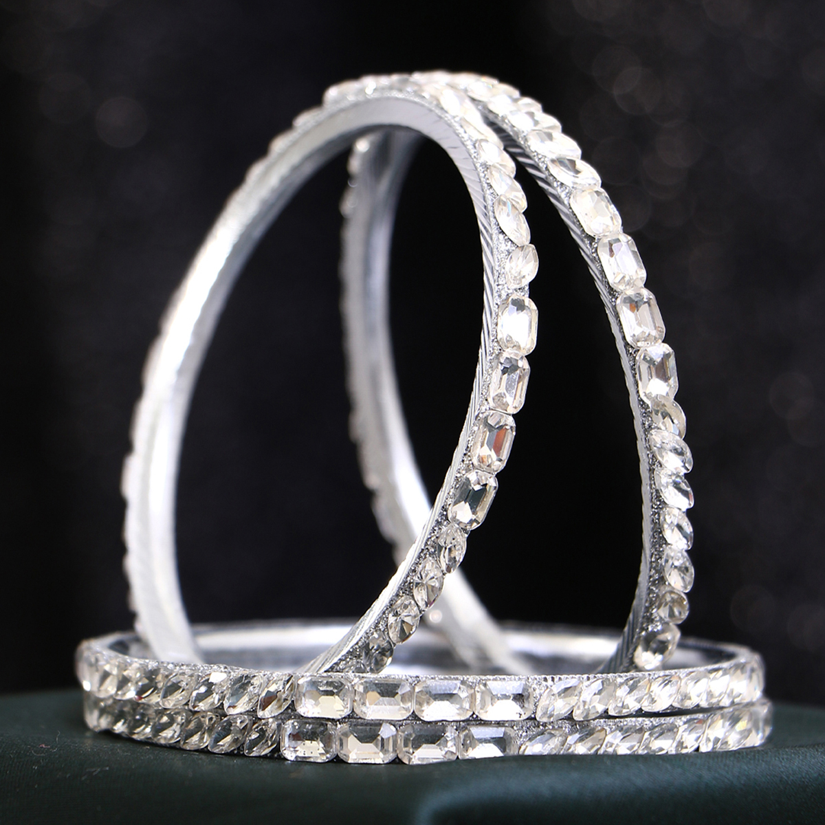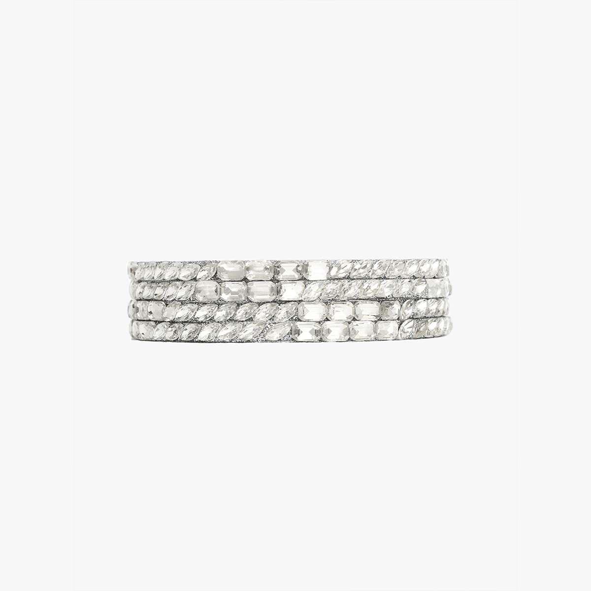 Women Set of 4 Rohdiumn Plated Kundan Studded Bangles