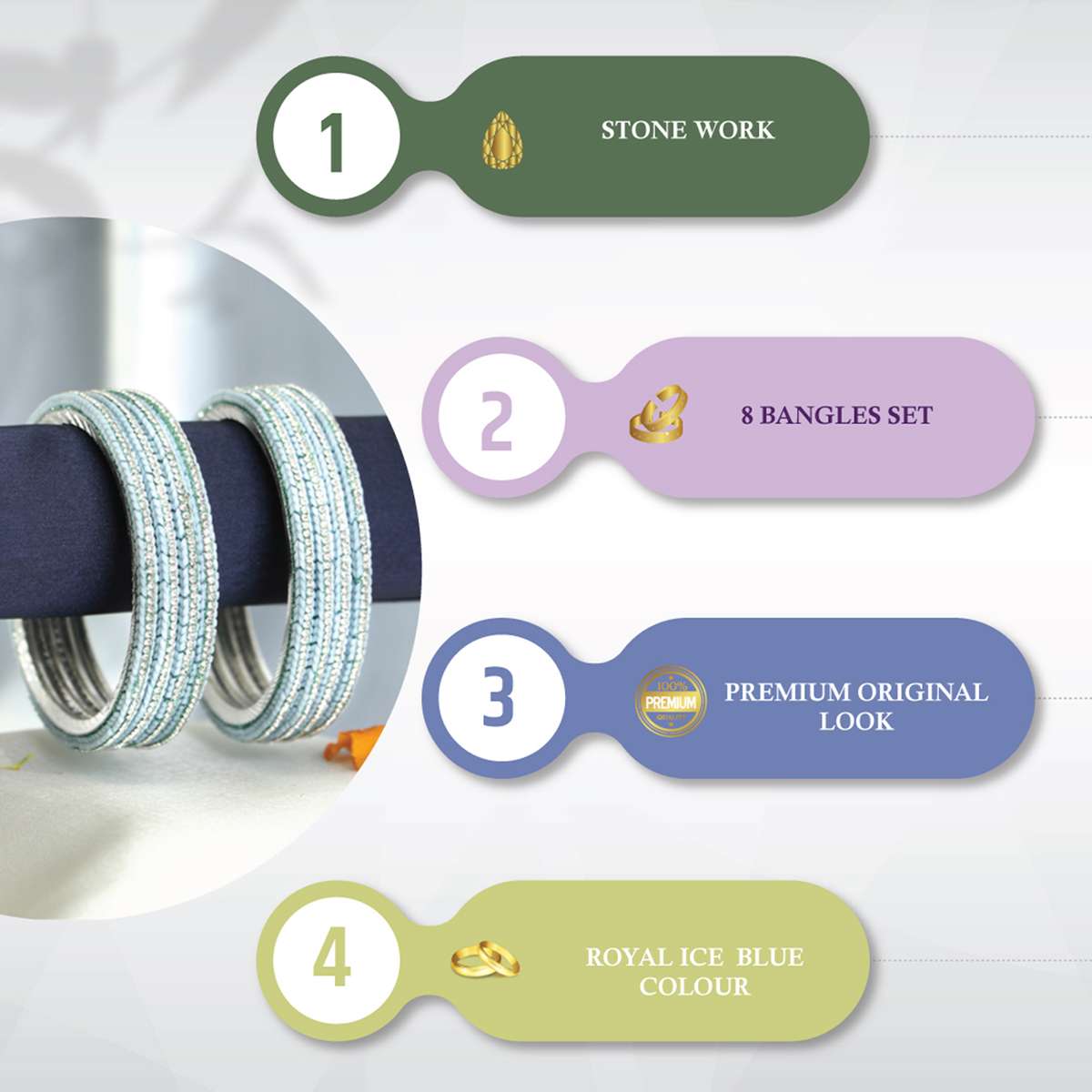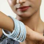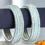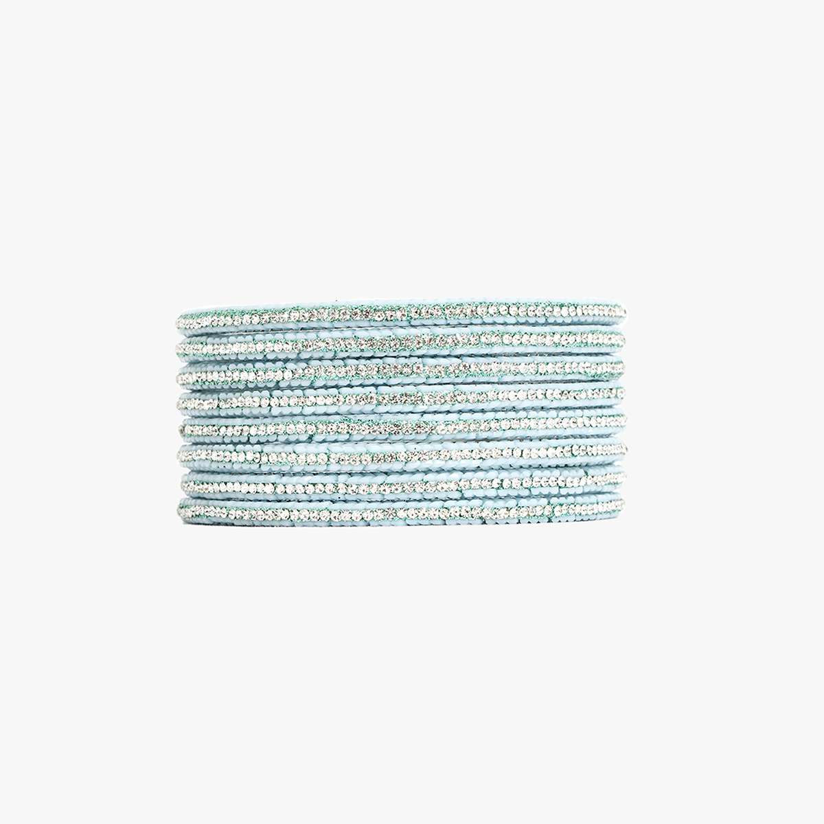 Women Set of 8 Rohdiumn Plated Blue Tiny Diamond Studded Bangles. Our Rohdiumn Plating is long lasting and non-allergic to skin