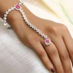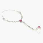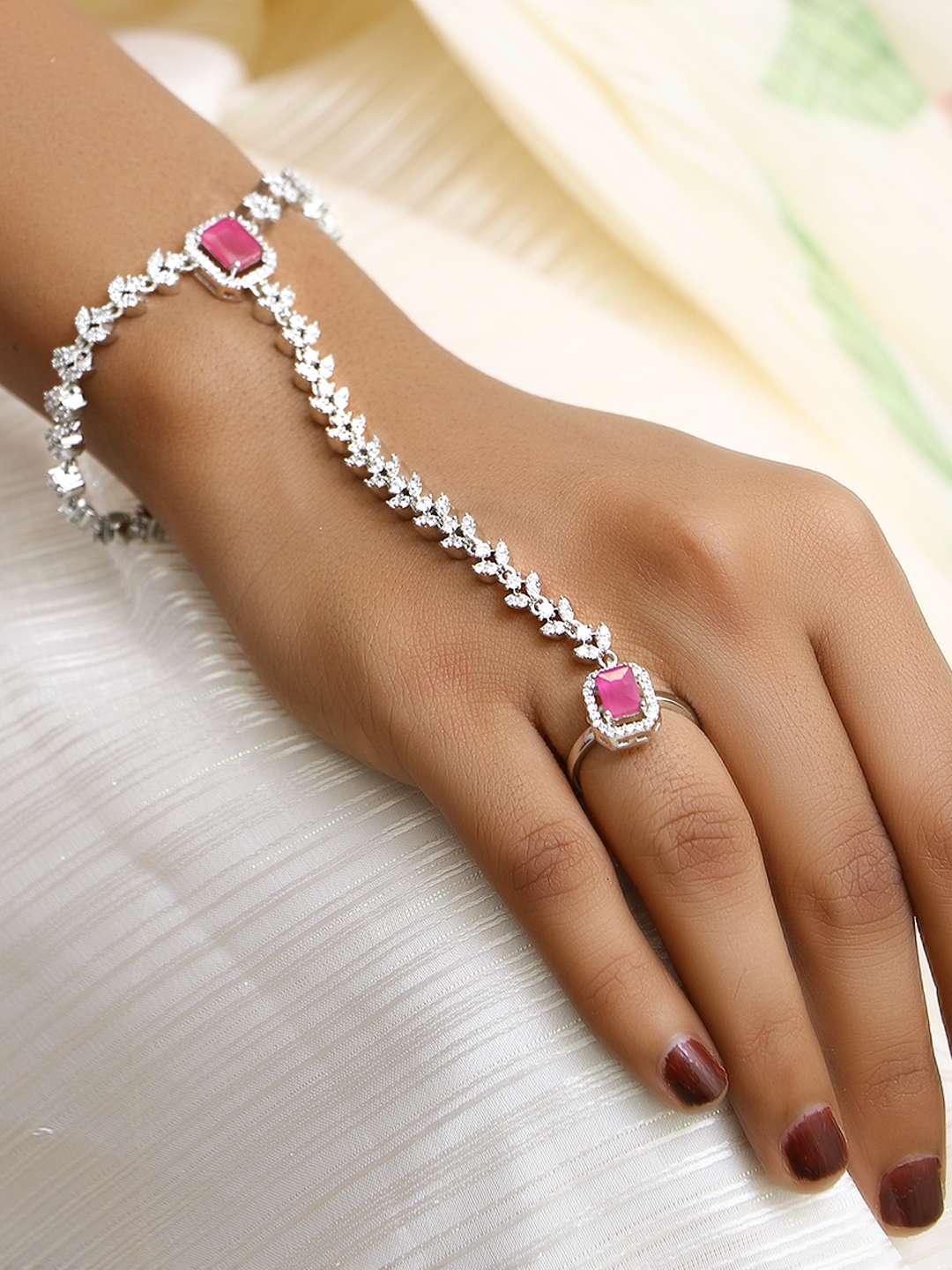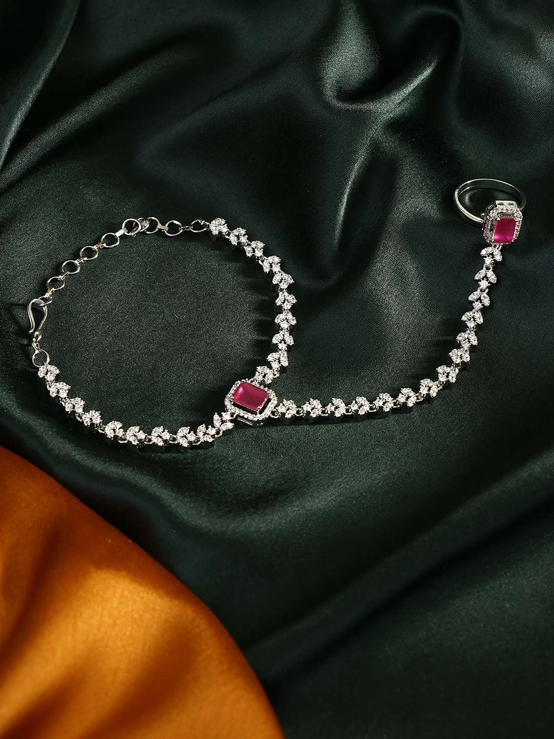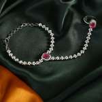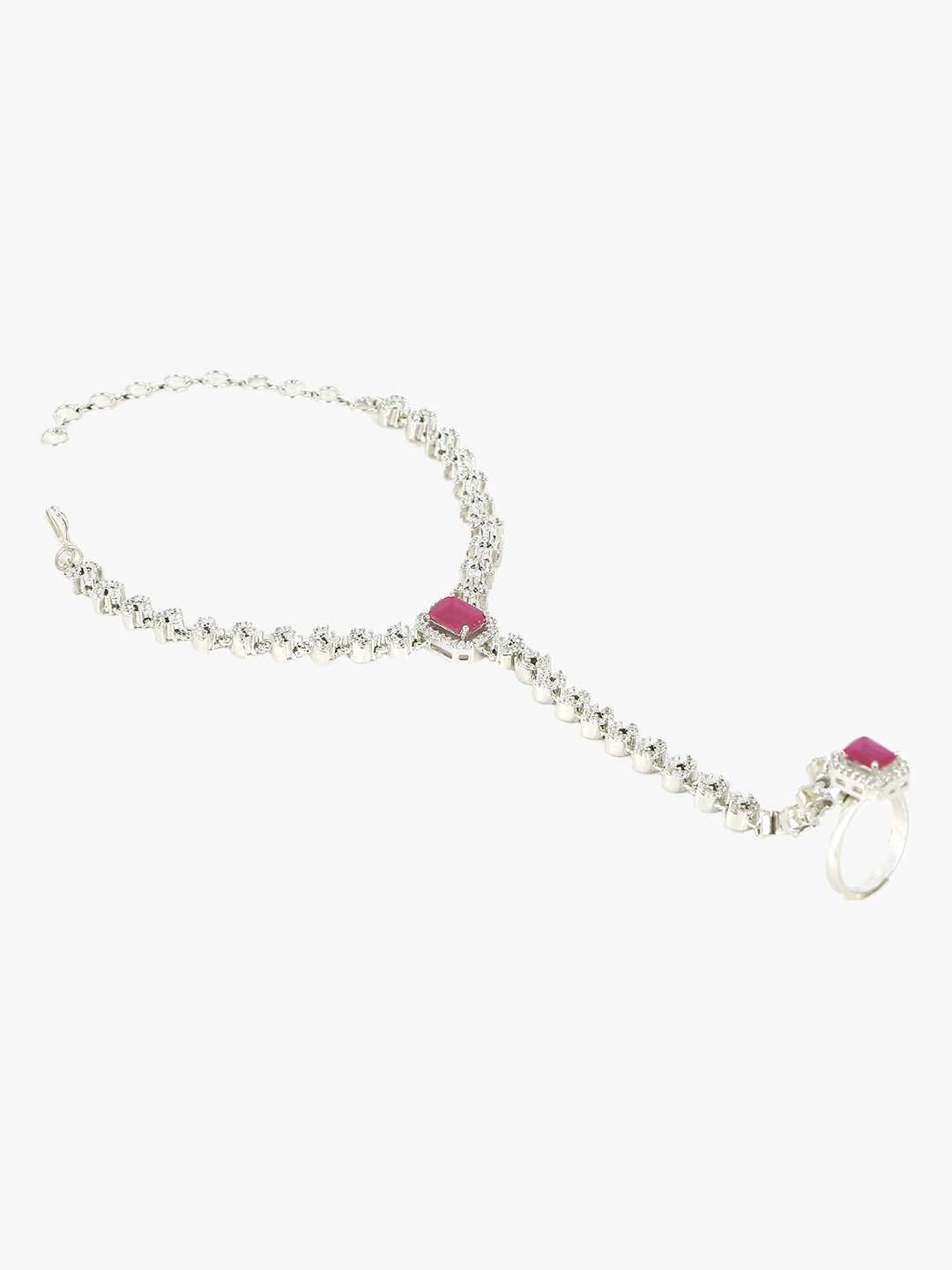 Women Silver Plated CZ and Pink Stone Studded Ring Bracelet