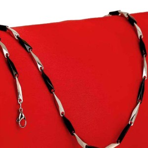 Men Dual tone silver and Black Block Collar Stainless Steel Chain