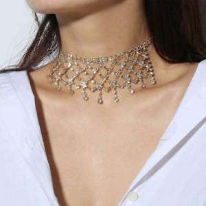 Choker Necklaces Silver Rhinestones Pendant Necklace Festival Party for Women and Girls