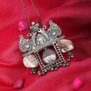 Oxidised Silver Stone Pendant Set