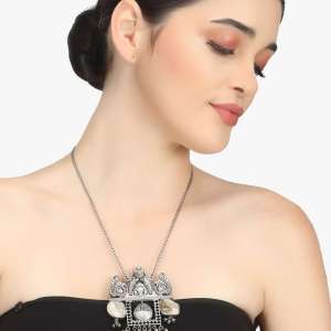 Women Silver-plated Off-White Stone Pendant With Chain secured with an S-hook closure,