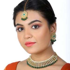 Kundan Dark Green Necklace Set With Earring&Mangtika