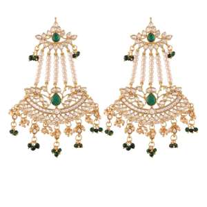 Women Gold Plated Green Stone Studded Pearl Beaded Dome Jhumkas with Push Back Closure. Our Gold Plating is long lasting and non-allergic to skin. It Give you a beautiful elegant look with our outfit.
