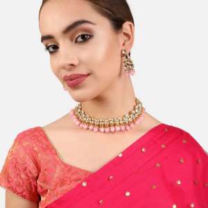 24CT Gold-Plated Marathi Kundan Design Pink Pearl Beaded,